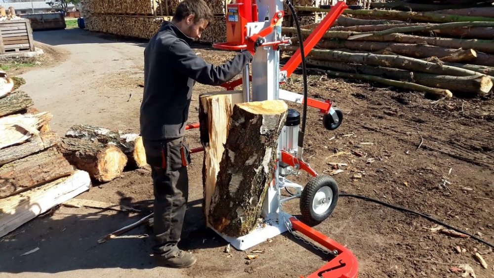Vertikální hydraulický profesionální štípač s elektromotorem.