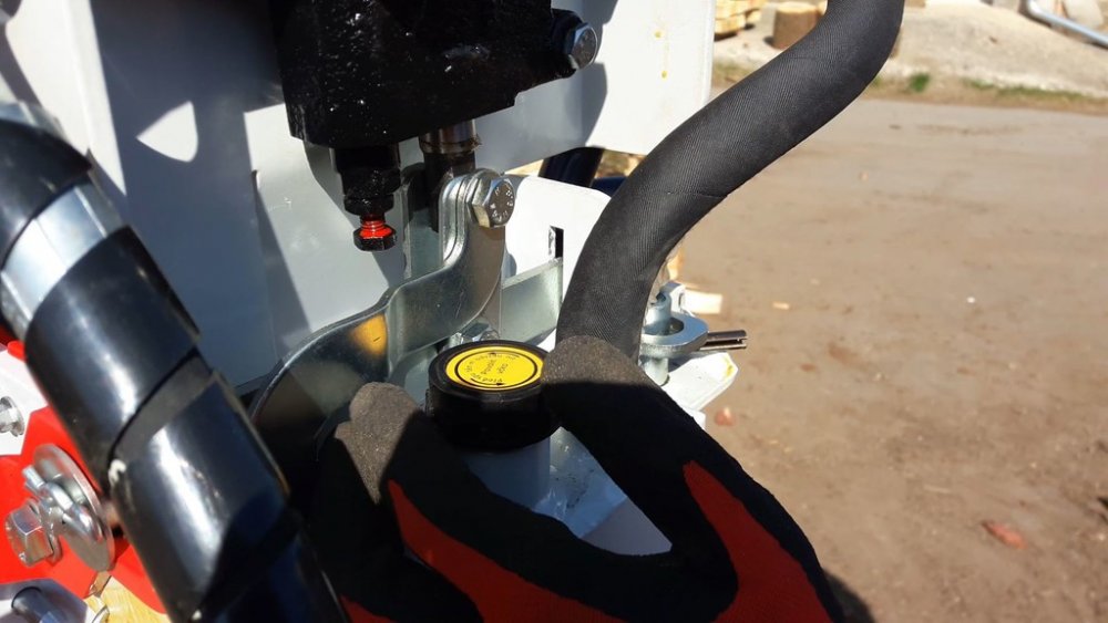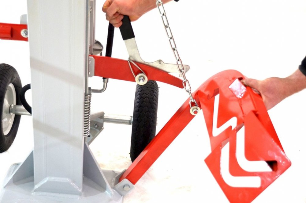 Štípačka splňuje novou normu EU pro bezpečnost práce. Ke standardnímu obouručnímu ovládání tak přibylo nové, větší ochranné rameno a transportní kolo u vodicích rukojetí pro snadný převoz štípačky. Levá ovládací páka je vybavená zařízením pro zajištění stability polena.