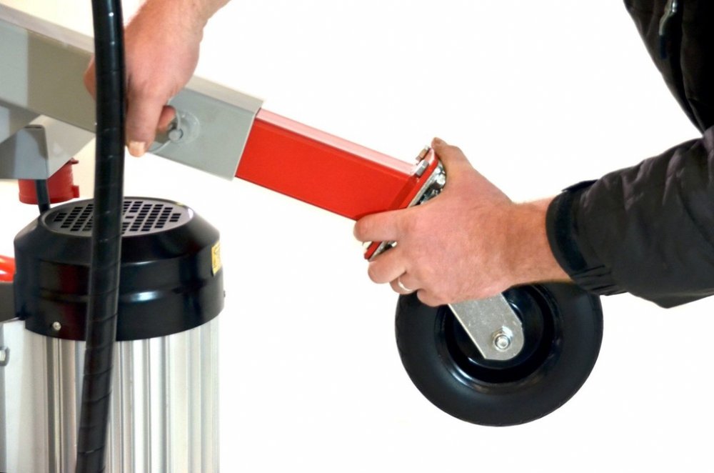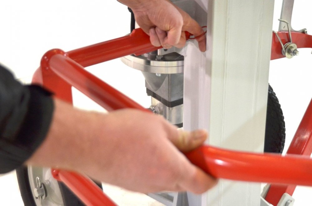 Velká kola, třetí transportní kolo u vodicích rukojetí, možnost snížení pístu a sklopení bočních opěr usnadňuje manipulaci se strojem a jeho skladování.