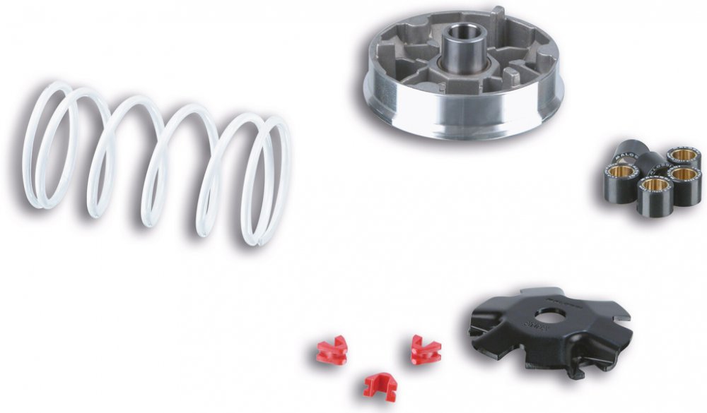 Variátor Malossi Multivar 2000, Garelli VIP 4T - Variátor Malossi Multivar je vhodný pro skútry, jak seriové, tak upravené. Poskytne plynulý přenos výkonu a kroutícího momentu na zadní řemenici. Osvědčený výrobek od Malossi, zaručuje vysokou kvalitu a dlouhou životnost. V sadě je variátor, jedna sada válečků 16x13 6g a bílá kontrastní pružina.