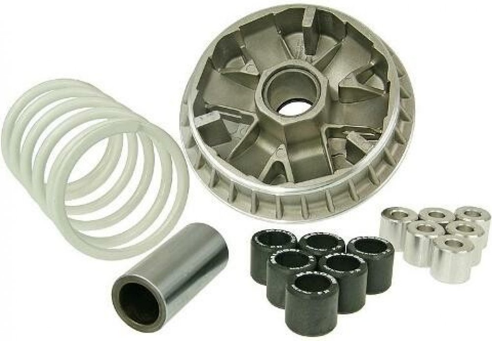 Variátor Malossi Multivar 2000, Kymco Xciting 500 - Variátor Malossi Multivar je vhodný pro skútry, jak seriové, tak upravené. Poskytne plynulý přenos výkonu a kroutícího momentu na zadní řemenici. Osvědčený výrobek od Malossi, zaručuje vysokou kvalitu a dlouhou životnost. V sadě je variátor, jedna sada válečků 25x22,2 20g, mazivo Malossi MRG a bílá kontrastní pružina.