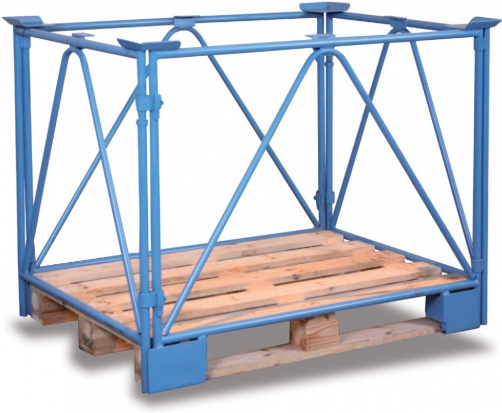 Umožňuje bezpečné stohování palet. Konstrukce ze svařovaných ocelových profilů a trubek. Povrchová úprava lakovaná prášková barva RAL 5012 modrá. Při upěvnění na EUR-paletu vznikne skladovací prostor pro ukládání. Výška rámu 1600 mm, pro palety o velikosti 1200 x 1000 mm. Stohovatelnost - 3 kusy, nosnost 2000 kg. Paleta není součástí dodávky.