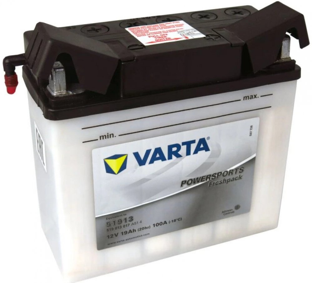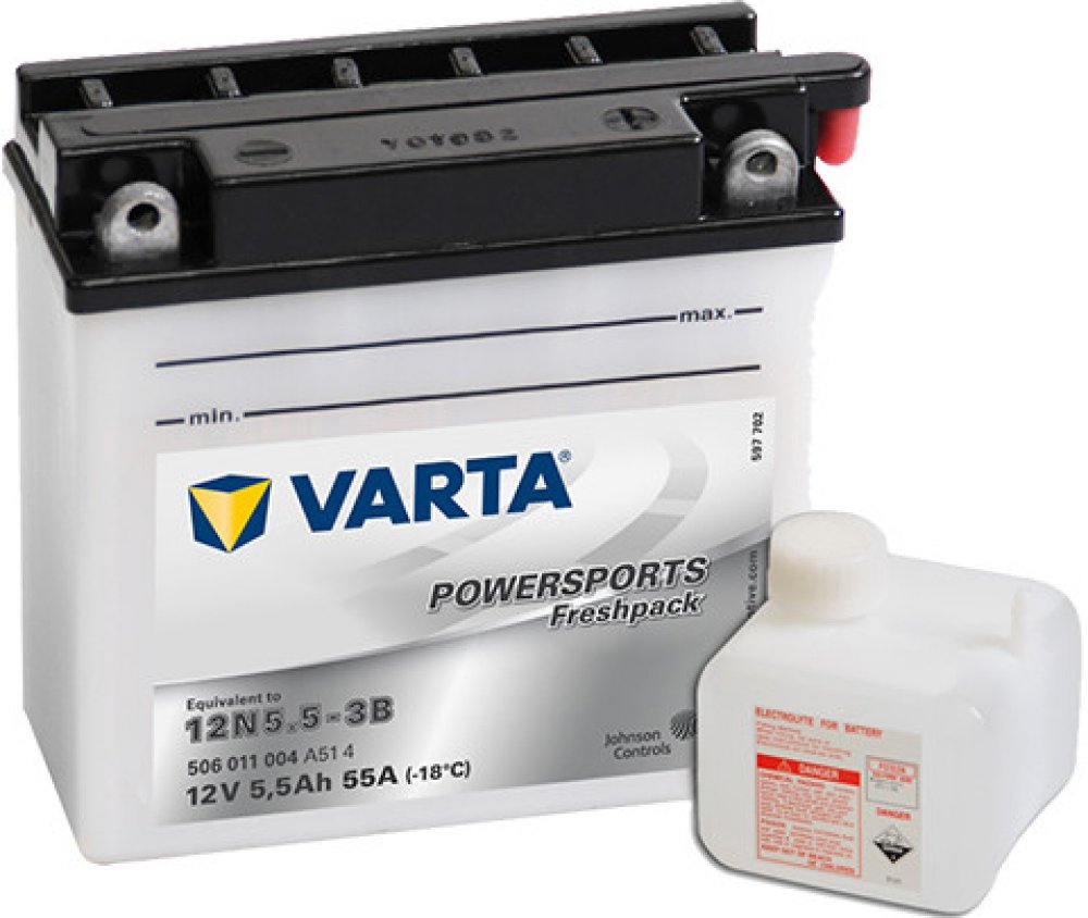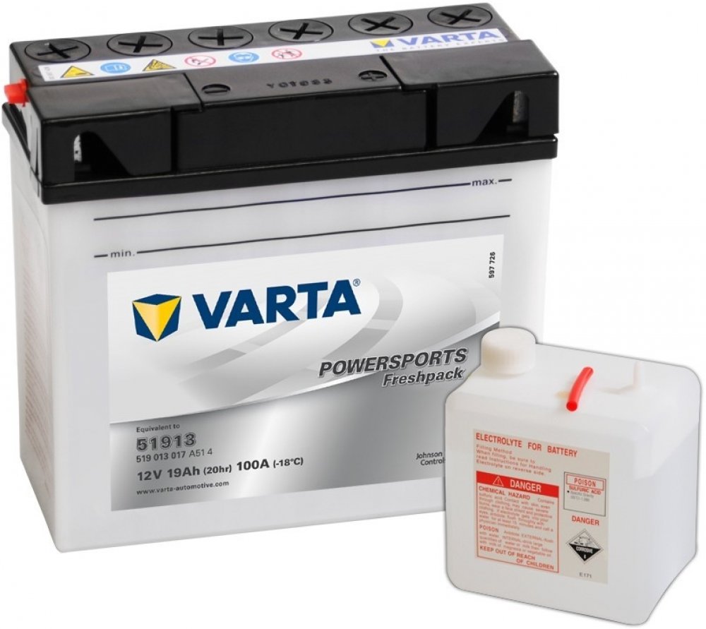 Suchá nabitá baterie dodávaná ve verzi Freshpack (s nádobou s elektrolytem)