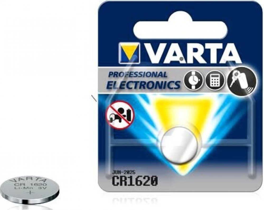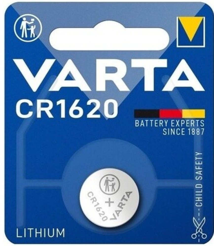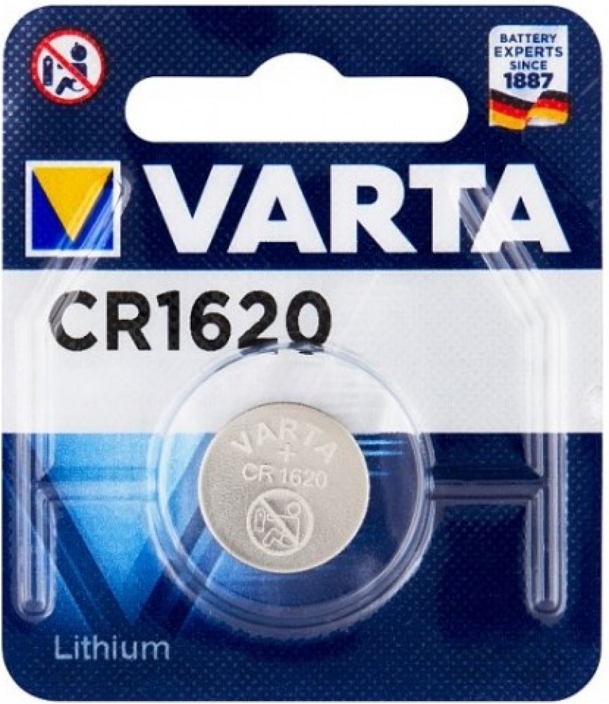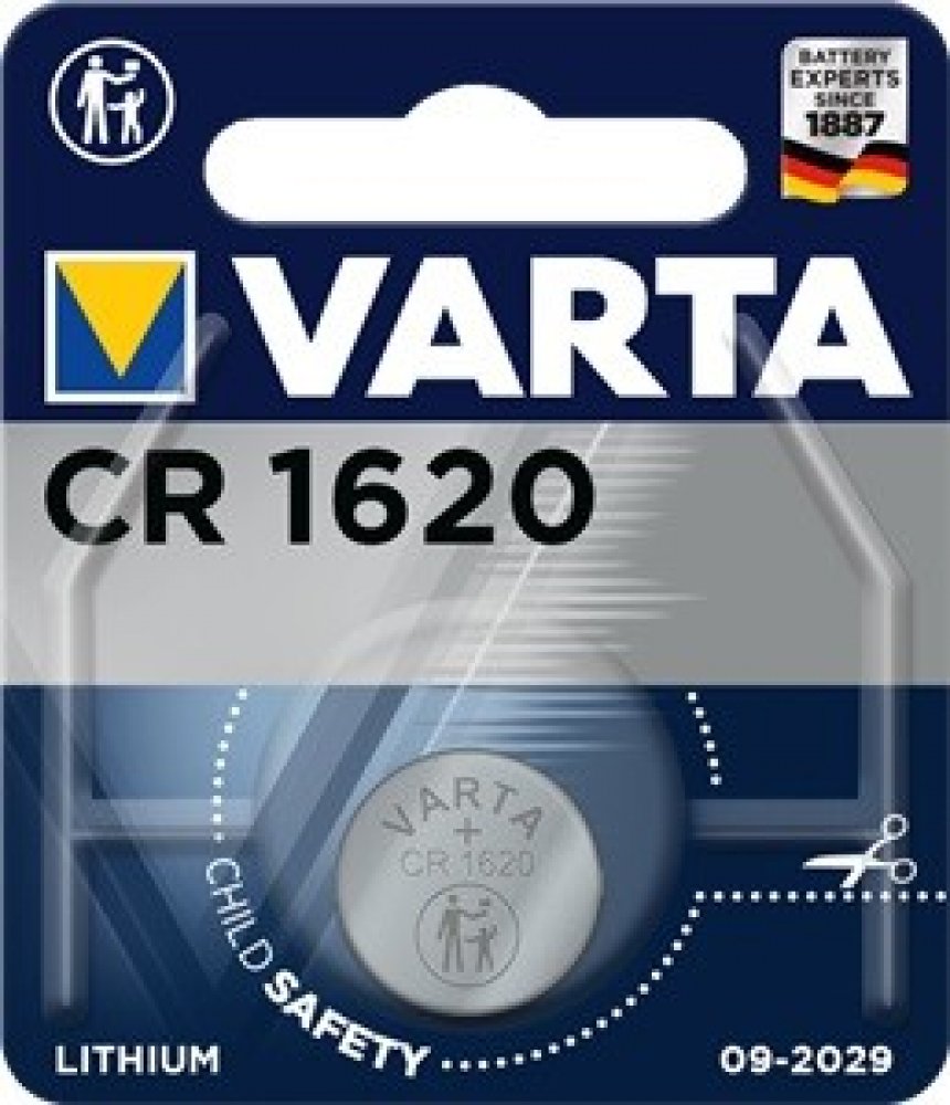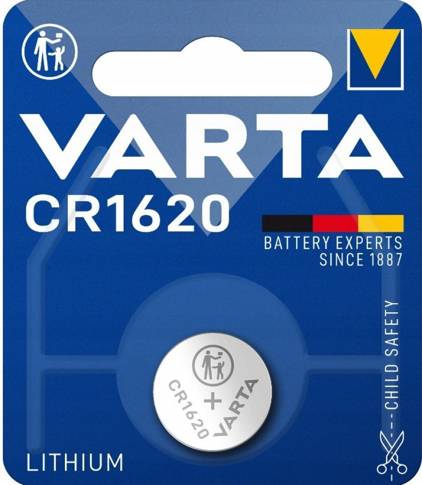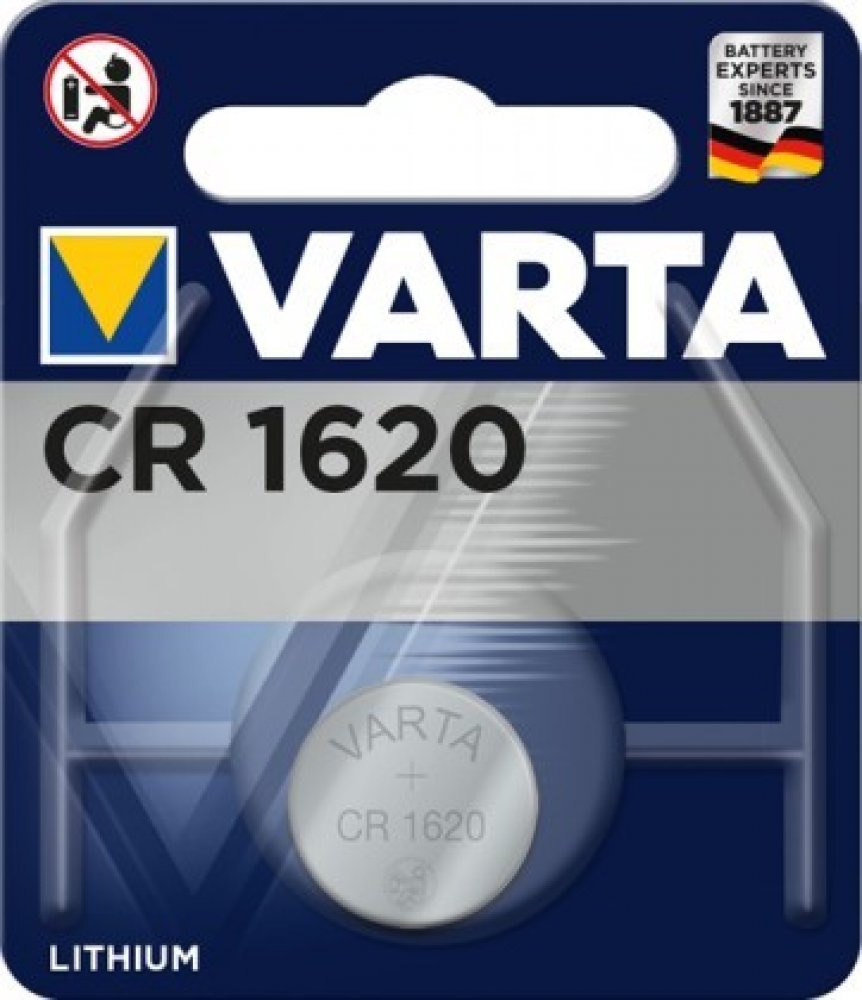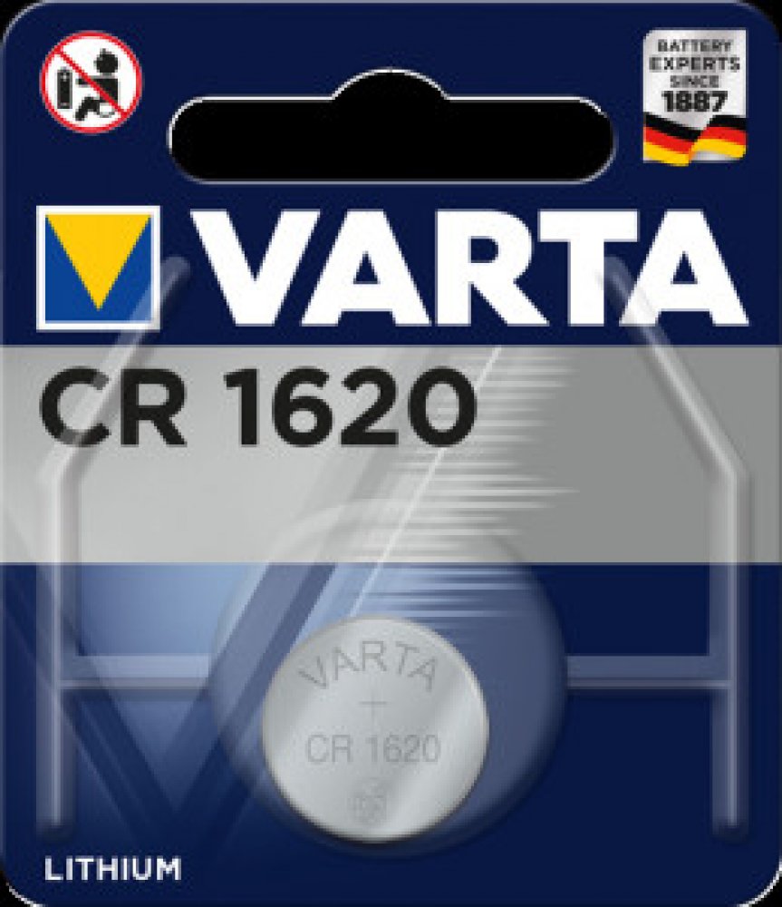 Varta 1x 3V CR 1620. Typ baterie: Baterie na jedno použití, Typ baterie: Lithium, Napětí baterie: 3 V. Výška: 2 mm, Průměr: 1,6 ...