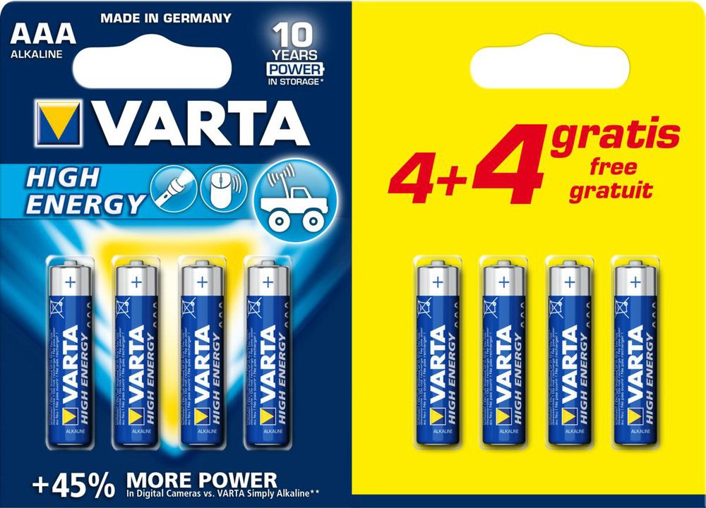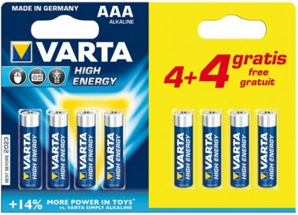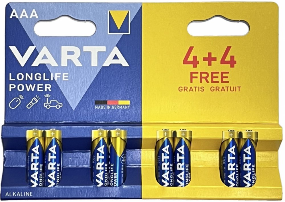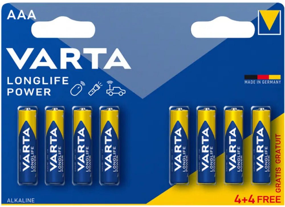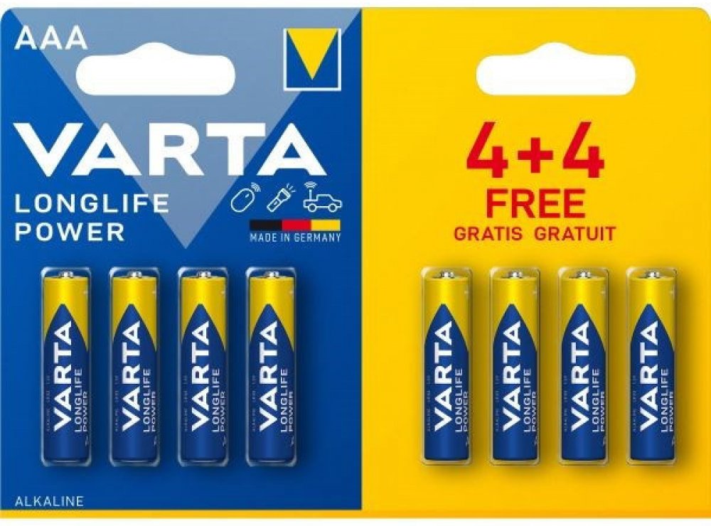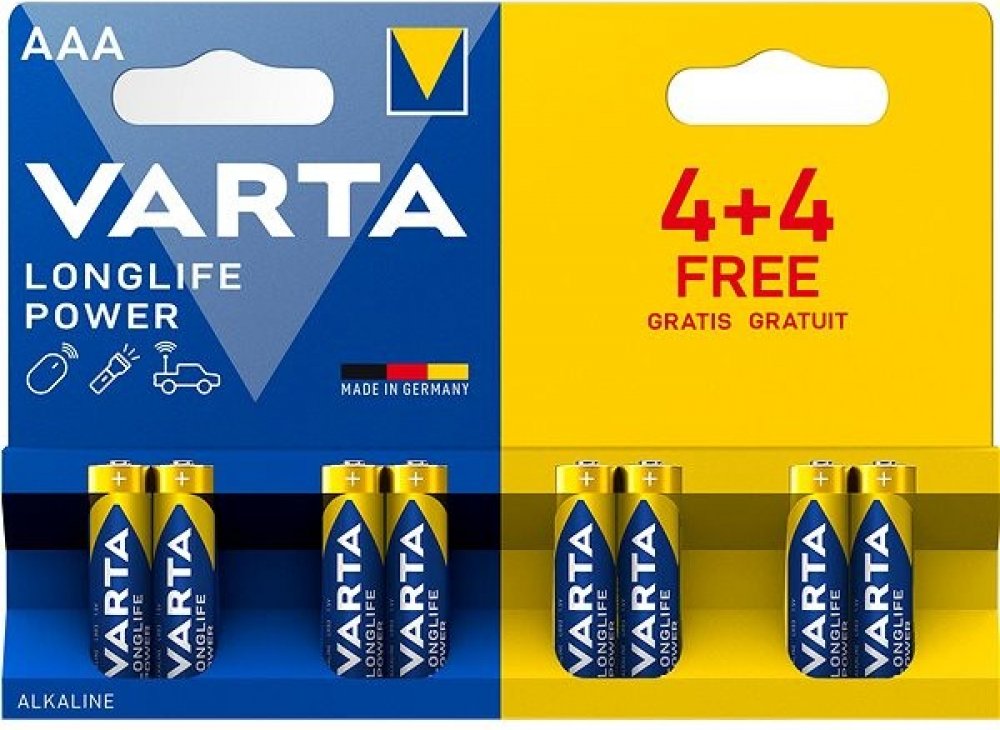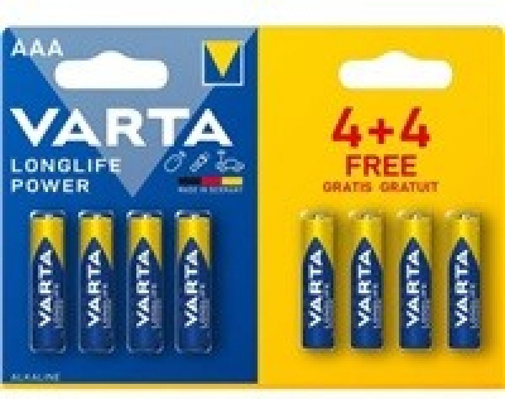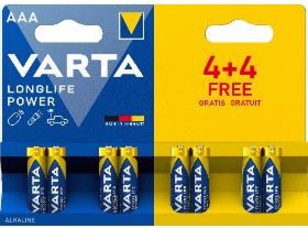 Baterie mikrotužka AAA LR03 (4 + 4 ks) alkalická, Longlife Power VARTA.