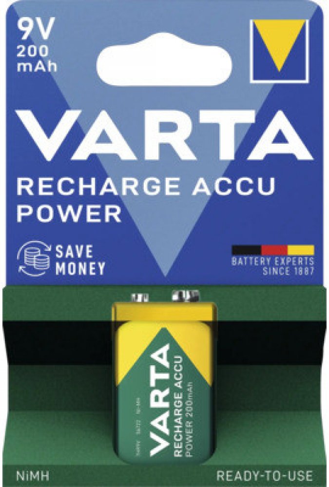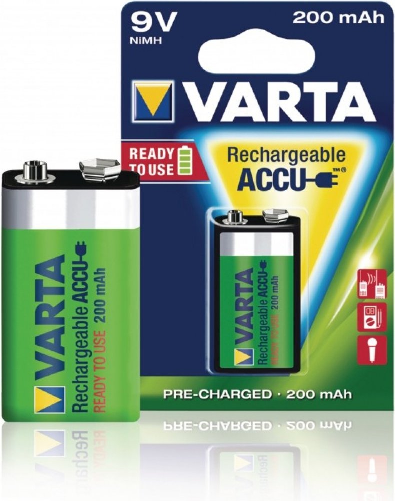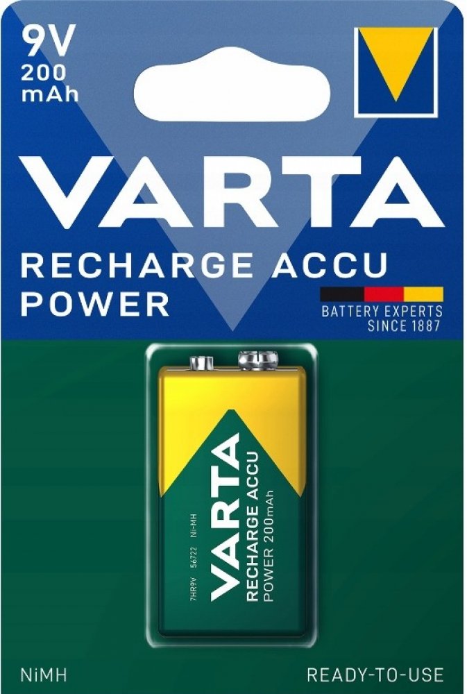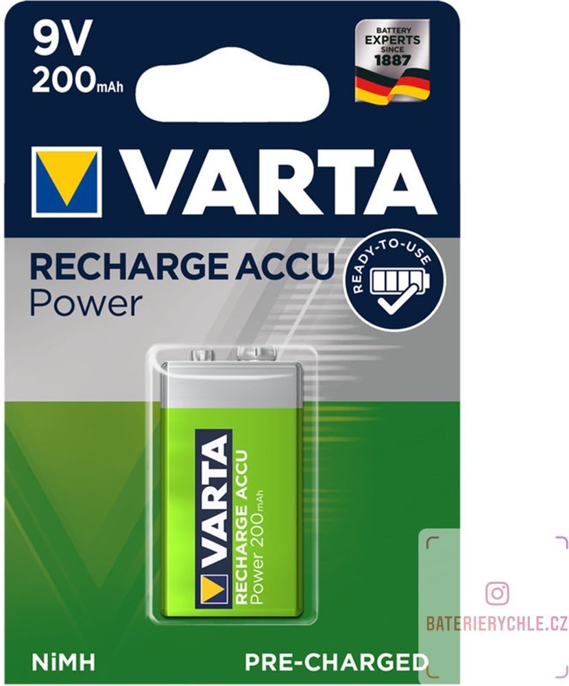 Značková přednabitá nabíjecí baterie Varta 9V, velikosti 6LR61, 200mAh, 1ks v balení blistr