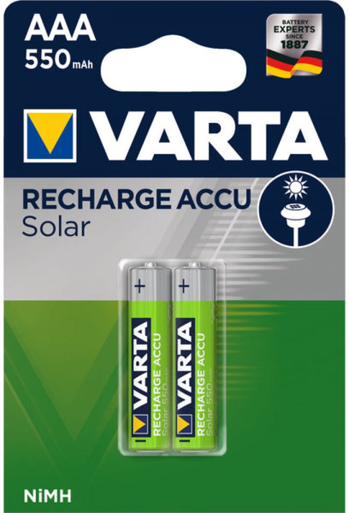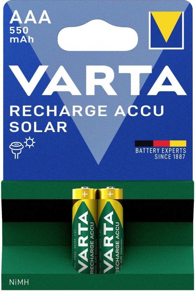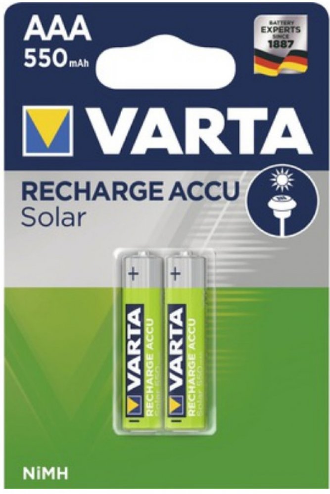 Klasické baterie najdou uplatnění v každé domácnosti. Neobejde se bez nich televizní ovladač, hodiny, dětská chůvička či některé elektronické hračky. Nabíjecí tužková AAA (Mikrotužková, LR03) VARTA nabíjecí baterie Rechearge Accu Solar AAA 550 mAh 2ks je ideální pro běžné použití. Jedná se o nabíjecí baterie s napětím 1,2 V. Nesporným plusem je tedy možnost opakovaného nabíjení. Pro baterii není p...