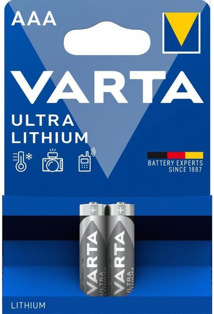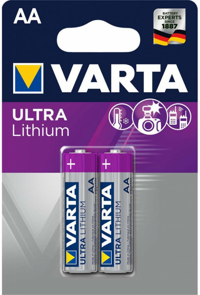 Baterie Varta Ultra Lithium jsou vysoce výkonné zdroje energie navržené pro moderní elektronická zařízení s vysokou spotřebou. Tyto baterie jsou ideální pro digitální fotoaparáty, GPS navigace, herní konzole, chytré domácí zařízení a další přístroje, které vyžadují stabilní a silný zdroj energie. Hlavní vlastnosti: Typ baterie: Lithium Extrémní teplotní odolnost: Fungují spolehlivě v extrémních teplotách od -40 °C do +60 °C. Lehká konstrukce: Až o 35 % lehčí než běžné alkalické baterie, což je činí ideálními pro přenosná zařízení. Dlouhá životnost: Nabízejí až sedmkrát delší výdrž než běžné alkalické baterie v digitálních fotoaparátech. Dlouhá skladovatelnost: Zachovávají svou kapacitu až 10 let, což znamená, že jsou připravené k použití i po delším skladování. Spolehlivý výkon: Poskytují konzistentní a vysoký výkon, což zajišťuje bezproblémové používání vašich zařízení. Počet kusů v balení: 2 ks. Varta Ultra Lithium baterie jsou vhodné pro náročné uživatele, kteří vyžadují vysoký výkon a spolehlivost v náročných podmínkách. Jsou perfektní volbou pro profesionální i amatérské fotografy, outdoorové nadšence a všechny, kdo potřebují dlouhotrvající a spolehlivý zdroj energie pro svá elektronická zařízení IEC: FR14505