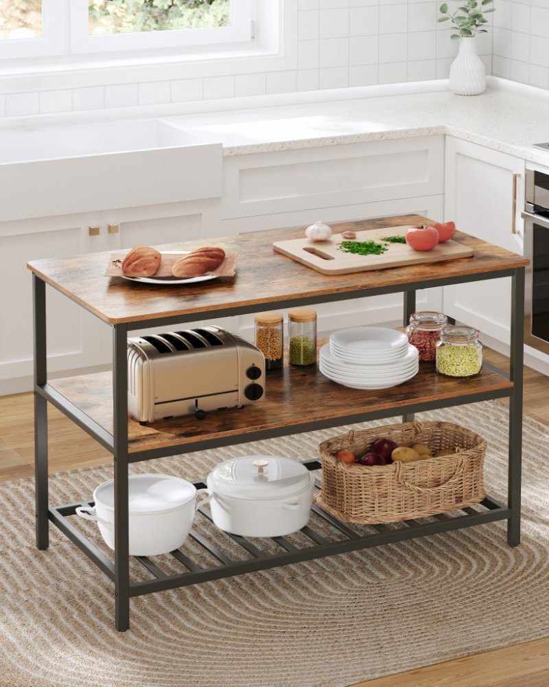 Popis:[Velká pracovní plocha] Na pracovní ploše této kuchyňské police o rozměrech 60 x 120 cm můžete připravovat jídlo a zároveň máte dostatek místa pro topinkovač nebo kávovar. Velká pracovní plocha pro spoustu pohodlí![Úložný prostor na 3 úrovních] Na horní polici umístěte vázu na květiny nebo čajovou soupravu, na prostřední polici kuchyňské náčiní a na spodní polici úložné boxy s pečicími forma...
