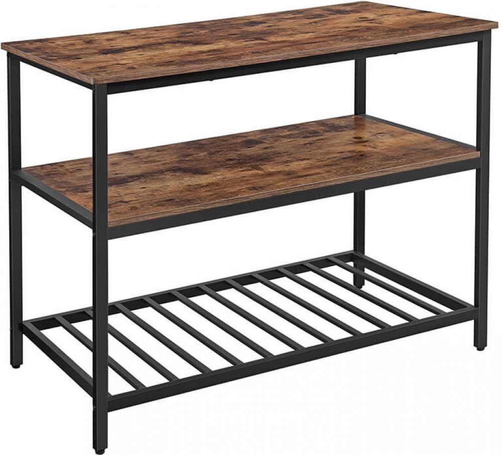 Popis:[Velká pracovní plocha] Na pracovní ploše této kuchyňské police o rozměrech 60 x 120 cm můžete připravovat jídlo a zároveň máte dostatek místa pro topinkovač nebo kávovar. Velká pracovní plocha pro spoustu pohodlí![Úložný prostor na 3 úrovních] Na horní polici umístěte vázu na květiny nebo čajovou soupravu, na prostřední polici kuchyňské náčiní a na spodní polici úložné boxy s pečicími formami - na této kuchyňské polici se 3 úrovněmi je vše uspořádáno[Všestrannost] Díky výšce 90 cm je kuchyňský ostrůvek mimořádně všestranný: použijte jej jako snídaňový stolek k občerstvení, jako kávový bar pro kávovar a příslušenství nebo jako barový stolek k servírování nápojů... jakkoli se vám to hodí![Už žádné kývání] Nastavitelné nožičky připevněné ke 4 nohám zajišťují, že tento stojící regál je stabilní a nekýve se pokaždé, když na něj položíte nějaký předmět, a to ani na mírně nerovné podlaze[Snadná montáž] Součástí balení je ilustrovaný návod, označené díly a Šestihran - tento regál na koření je dodáván se vším, co potřebujete k jeho rychlé montážiPodrobnosti o výrobku: V balení naleznete všechny potřebné informace o výrobku:- Barva: béžovo-černá- Materiál: dřevotříska, ocel- Rozměry: 120 x 60 x 90 cm (d x š x v)- Hmotnost: 26,5 kg- Maximální statická nosnost na jednu polici: 30 kgRozsah dodávky:- součástí dodávky je 1 x kuchyňská police- 1 x balení příslušenství- 1 x návod k použitíVASAGLE Poznámky: VASAGLE je součástí dodávky:- Z bezpečnostních důvodů nesmí děti na kuchyňskou polici lézt ani si s ní hrát. Barový stůl VASAGLE Geir nadchne všechny milovníky industriálního a rustikálního stylu. Kombinace dřevotřískové desky s hřejivou strukturou dřeva a silného ocelového rámu v černé barvě působí nesmírně elegantně. Velkou předností tohoto barového stolu je prostorná pracovní plocha a dvě odkládací police. Specifikace produktu Materiál desky a police: dřevotříska Materiál konstrukce: ocel Barva desky a police: rustikální hnědá Barva konstrukce: černá Nosnost: 50kg Podívejte se i na ostatní produkty ze série Vasagle. Rozměry produktu