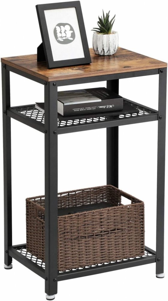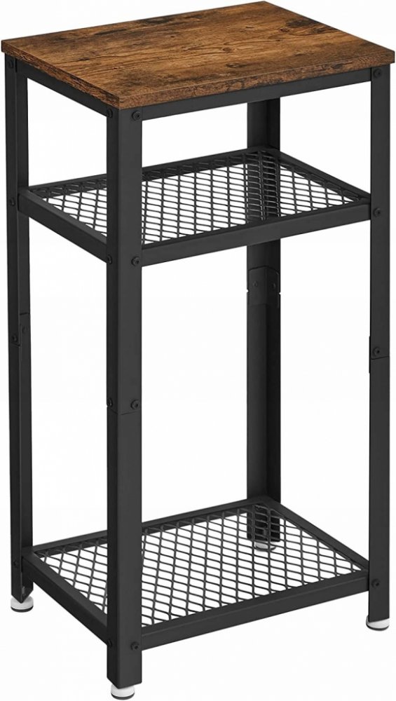 Odkládací stolek se 2 mřížkovými policemi, s kovovou konstrukcí, ocel, do kanceláře, chodby, obývacího pokoje, rustikální hnědá.