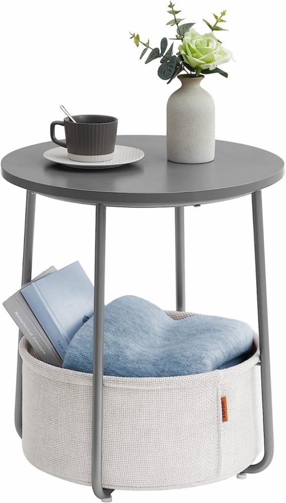 Rychlé a snadné sestavení. Díky jednoduché konstrukci a jasným pokynům lze tento stolek sestavit za 5-10 minut. Vhodný do malých prostor, možnost využít jako odkládací nebo noční stolek. Nastavitelné nožky zvyšují stabilitu a nepoškrábou podlahu. Tento jednoduchý šedý kulatý stolek s bílým košem dodá vašemu obývacímu pokoji nebo ložnici extra styl a lze jej snadno sladit s různými styly nábytku.