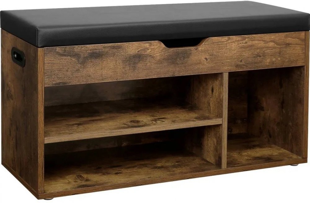 Dřevěná konstrukce unese až 150 kg a polstrování o tloušťce 4 cm vám umožní pohodlné přezouvání. 2 police pro 6 párů bot, odklopné sedátko, pod kterým je prostor pro další drobnosti. Srozumitelný návod a očíslované části vám umožní dokončit montáž dříve, než se nadějete. Výhody produktu: odolná konstrukce prostor na drobné předměty pod odklopným sedadlem industriální styl pohodlné přezouvání Technické specifikace: barva: rustikální hnědá materiál: dřevotříska, pěna PU rozměry: 80 x 30 x 44 cm (D x Š x V) hmotnost: 15,9 kg Max. statická nosnost sedáku: 150 kg Obsah zásilky: 1 x lavice pro uložení obuvi 1 x příslušenství