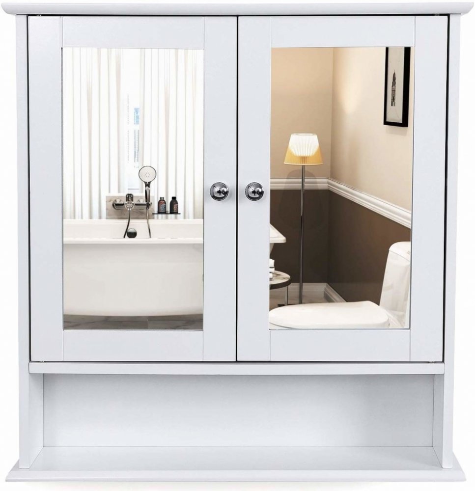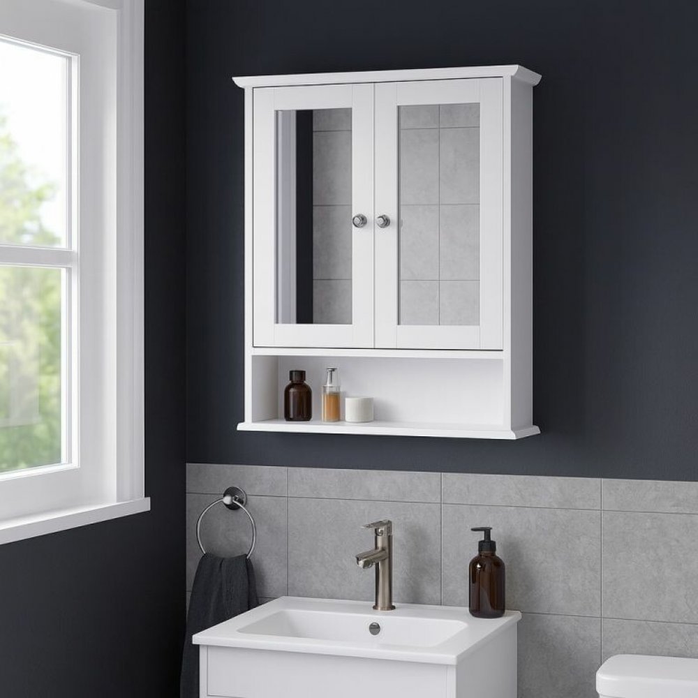 VASAGLE Nástěnná koupelnová skříňka se zrcadlem 2 dvířka bílá
