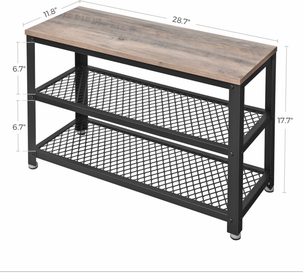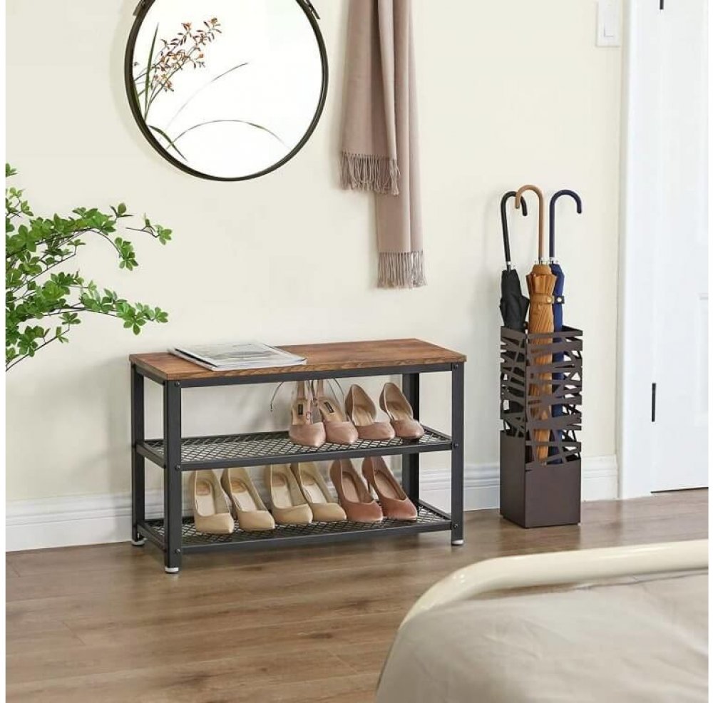 Praktický botník VASAGLE je vyroben v rustikálním stylu, kromě botníku plní také funkci lavičky, na kterou si můžete při obouvání sednout. Botník se skládá ze dvou otevřených polic. Botník bude skvěle ladit s industriálně zařízeným interiérem.