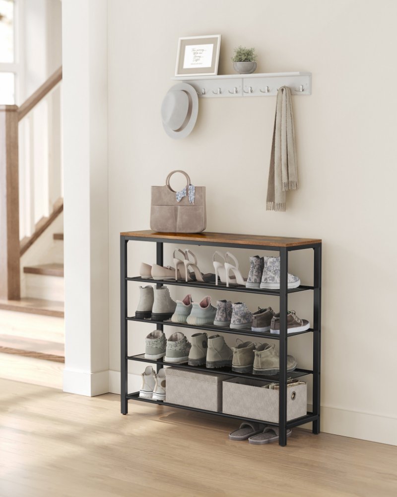 SILNÝ DESIGN: 4 otevřené police s hustou ocelovou sítí nabízejí dostatek prostoru pro vaše boty - tašky, klíče, rámy na obrazy nebo hezkou kytici růží (horní plocha pojme až 10 kg, police na boty každá až 5 kg)