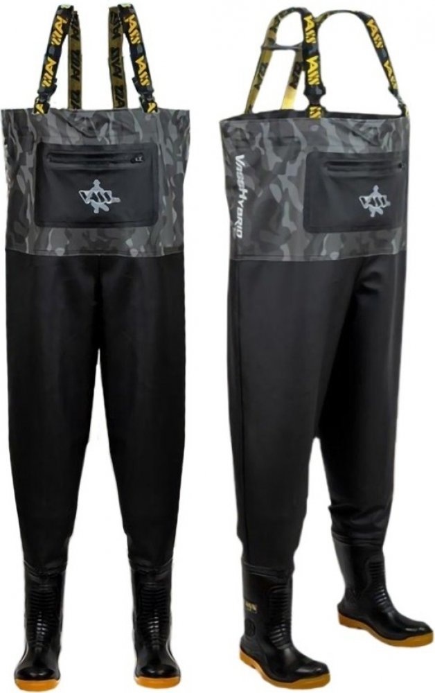 Precizně zpracované prsačky s šedým camo vzorem s povrchovou úpravou VRLR.Díky kombinaci materiálu Tough Vass-Tex 700 VRLR Stealth finish na spodní části a Vass-Tex 350 VRLR na vrchní části jsou tyto prsačky velmi odolné, ale také flexibilní a lehké. Rybářům je tak nabídnuto to nejlepší z obou Vass řad bez kompromisů. Specifikace: Kombinace materiálů Vass-Tex 700 + Vass-Tex 350 Vnější náprsní kapsa na zip Vnitřní náprsní kapsa Vnitřní stahovací šňůrka v hrudní části s nastaitelnými knoflíky Odolná a přilnavá bota Vass E Boot Široká lýtka Čtyřsvařované švy Rychloupínací kšandy Kvalitní protiskluzové podrážky Sada na opravu v balení Při výběru doporučujeme brát o 1/2 nebo 1 číslo větší velikost než je velikost tenisek (bot) které běžně nosíte. Bude se Vám z prsaček mnohem líp dostávat ven a zároveň se do nich při záběru bleskově obujete.