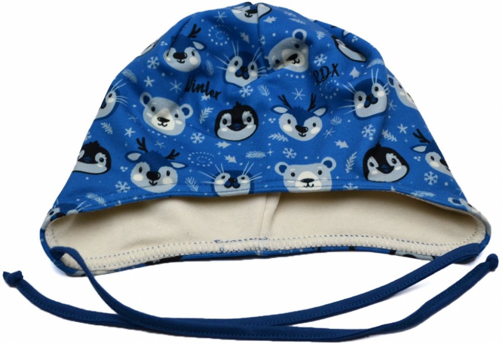 Vázací čepice na uši RDX Zvířecí hlavičky kluk Modrá
