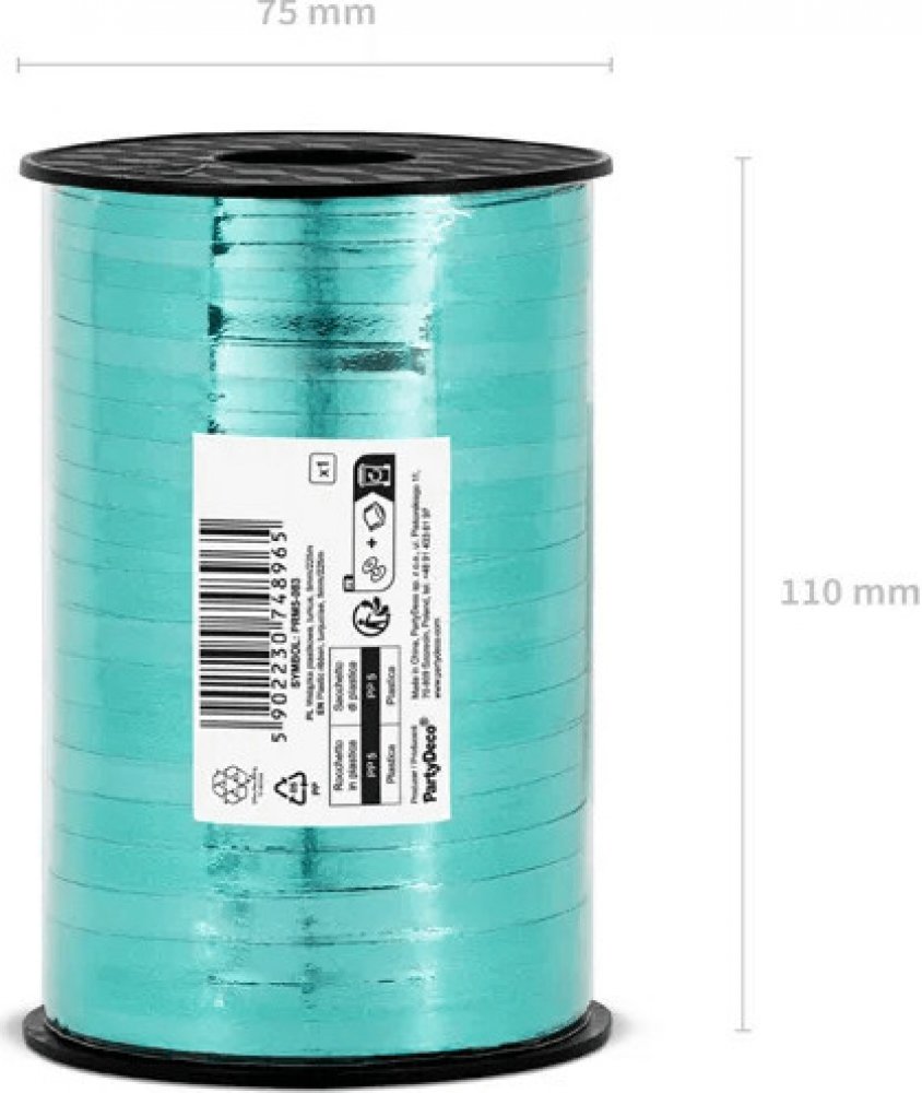 Stuha na balóny tyrkysová - metalická 225 m