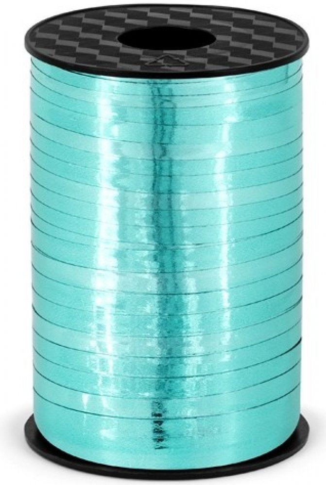 Vázací stuha na balónky tyrkysová metalická 225m