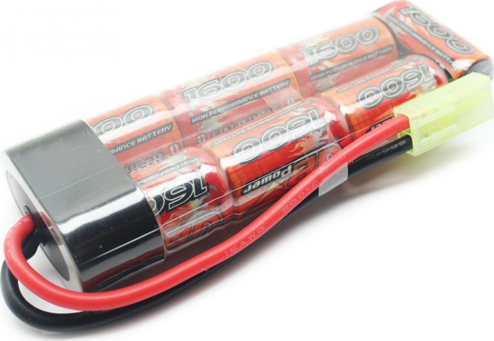 Nabíjecí NiMH baterie složená ze sedmi kvalitních článků! Jedná se o jedny z nejoblíbenějších akumulátorů na trhu. Má kapacitu 1600mAh a napětí 8,4V. Konstrukce umožňuje vložení do zbraní využívající baterii typ AK. Baterie má malý konektor Tamiya.