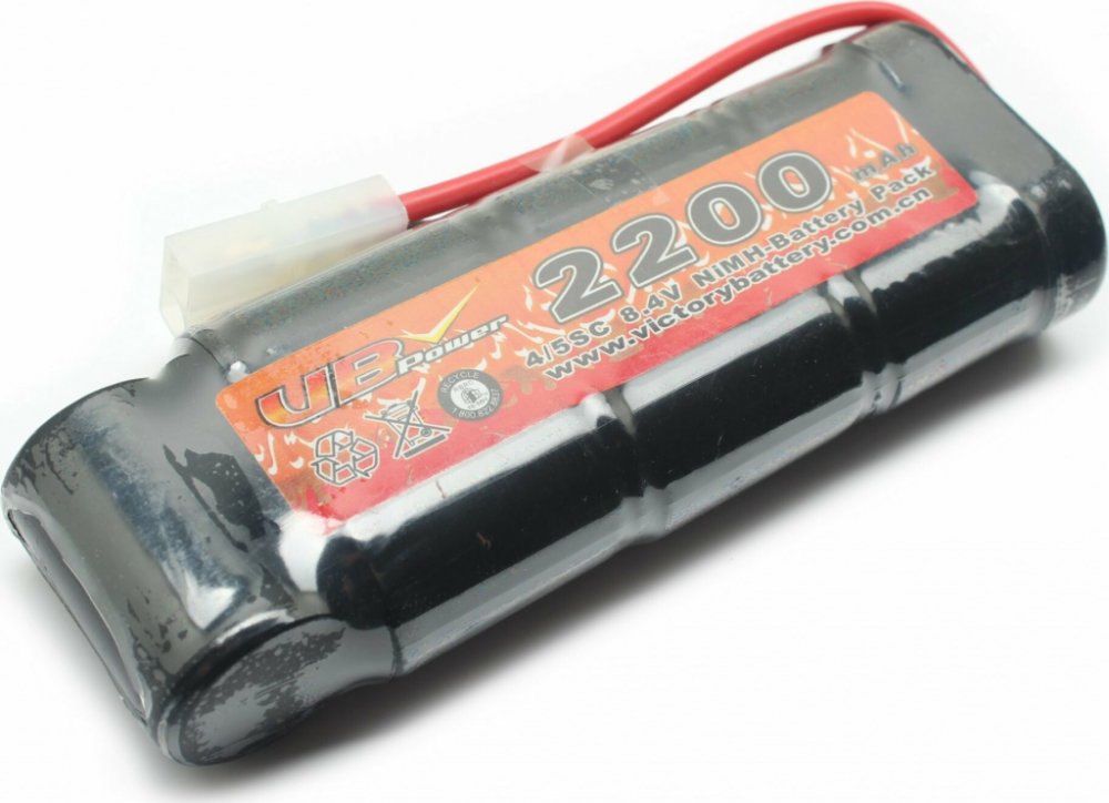 Nabíjecí NiMH baterie složená ze sedmi kvalitních článků typu 4/5SC za bezkonkurenční cenu! Má kapacitu 2200mAh a napětí 8,4V. Konstrukce umožňuje vložení do zbraní využívající velký prostor pro baterii v pažbě (např. AK47 s plastovou pažbou, M16, M14..apod).