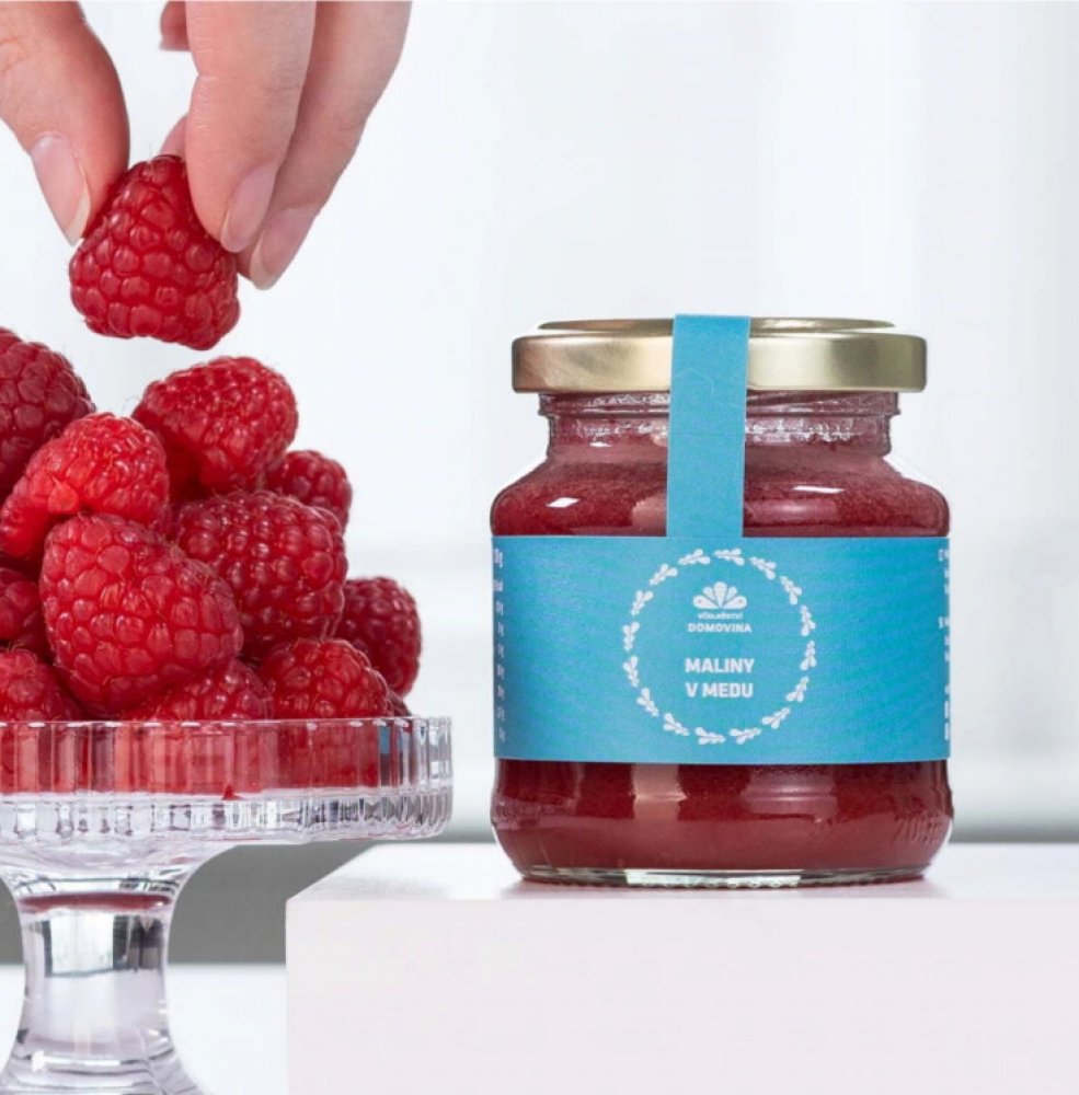 Obsahuje: květový pastovaný med (96 %), lyofilizované maliny (4 %)