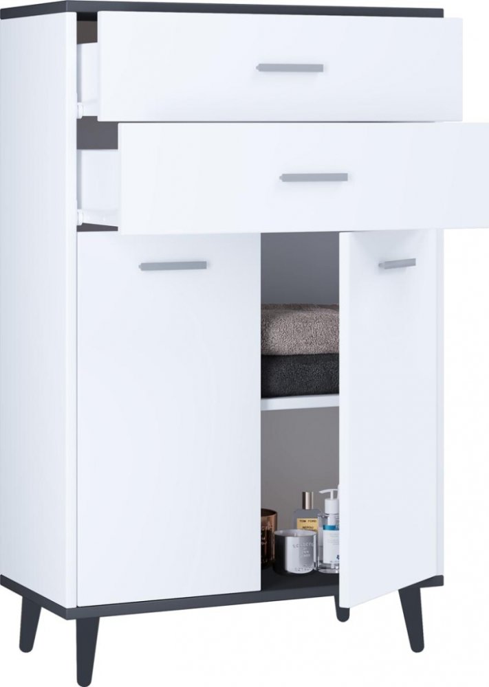 Hlavní vlastnosti: - Rozměry cca v. 97 x š. 60 x h. 28 cm - Dvě zásuvky - Dvoje výklopné dveře a dvě přihrádky - Praktické rozdělení polic - Moderní a nadčasový design. Díky svému nadčasovému a modernímu designu je vysoká komůrka VCM „Lindas“ krásným poutačem v každém obývacím pokoji. Dvě zásuvky a dvě velké přihrádky s praktickým rozdělením polic nabízejí dostatek úložného prostoru. Vysokou komůr...