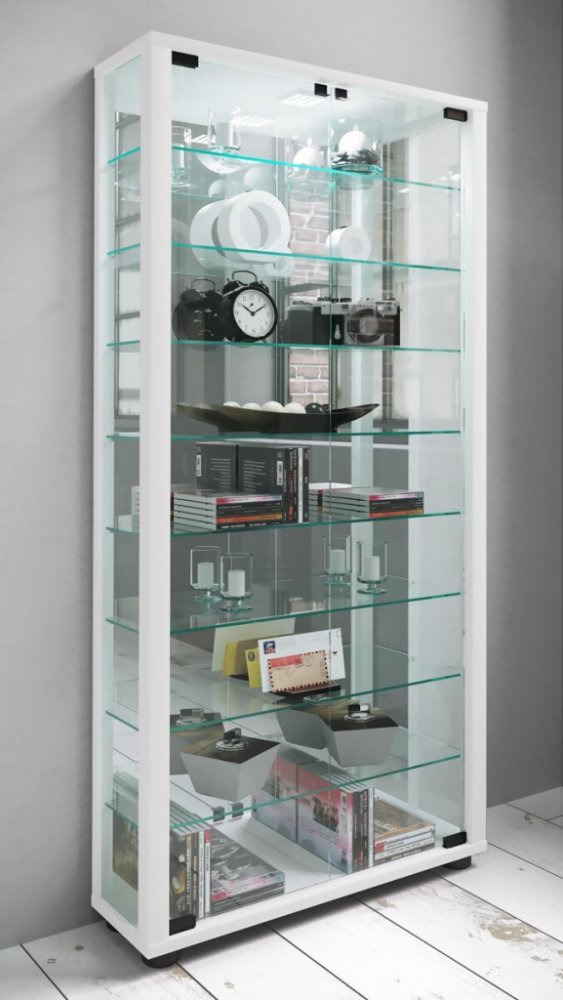 Hlavní vlastnosti: - Dvířka, boční panely a police z bezpečnostního skla ESG. - Rám z imitace textury dřeva - Stabilní zadní panel se zrcadlem - Osm variabilních polic - Čtyři nohy - Rozměry V. 115 x Š. 59 x H. 18 cm Stojací vitrína VCM „Lumo Maxi Mirror“ se vyznačuje nejen prvotřídní kvalitou. Zrcadlová zadní strana dodává vitríně moderní a mimořádnou eleganci. Každý obytný prostor se tak stává něčím velmi výjimečným. VCM se specializuje na design, výrobu a distribuci nábytku s férovým poměrem cena/výkon od 70. let 20. století a již jím ozdobila miliony domácností. VCM Stojací vitrína Lumo Maxi se zrcadlem, bílá za skvělou cenu.