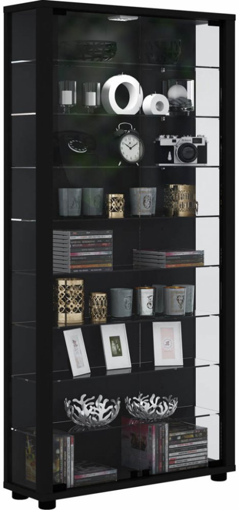 Polovysoká elegantní vitrína LUMO Maxi se dveřmi, bočnicemi a 8 variabilními policemi z čirého tvrzeného bezpečnostního skla. Rám i stabilní zadní stěna jsou vyrobeny z kvalitní repliky dřeva. K dispozici také ve variantě s LED osvětlením, díky kterému ještě více vyniknou vaše sbírky či dekorační předměty. Vitríny VCM mají mimořádně vysoký standard, který kromě trvalé a spolehlivé kvality zahrnuje také kompletní montážní materiál. Materiál: kvalitní imitace dřeva, tvrzené bezpečnostní sklo Rozměry: 118 x 59 x 18 cm Vitrína Lumo Maxi, černá za skvělou cenu.