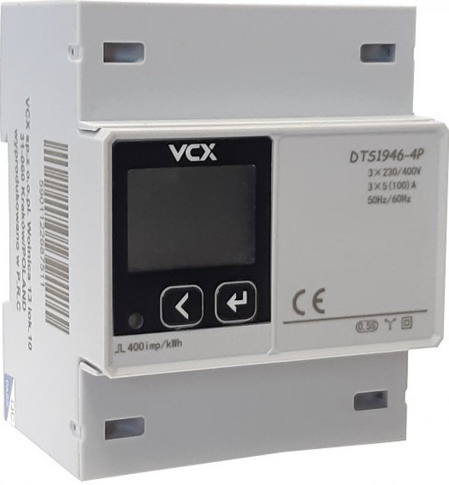 Elektroměr VCX DTS-1946-4P je moderní třífázový elektroměr, který je ideální volbou pro jakékoli aplikace vyžadující přesné měření spotřeby energie s možností dálkového odečtu. Díky integrovanému MODBUS RTU (RS485) rozhraní nabízí rychlou a spolehlivou komunikaci se systémy monitorování a řízení energie.