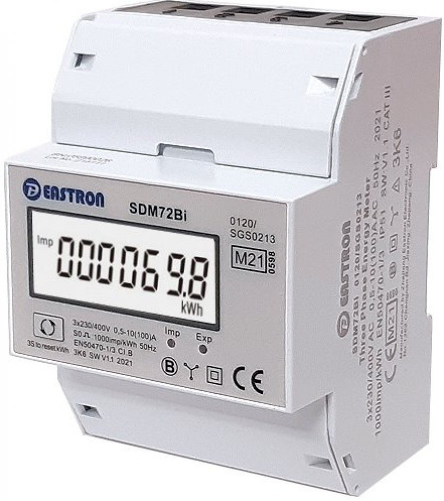 Elektroměr 3F na DIN lištu třífázový VCX EASTRON SDM72 BI, MID, digitální, RESET