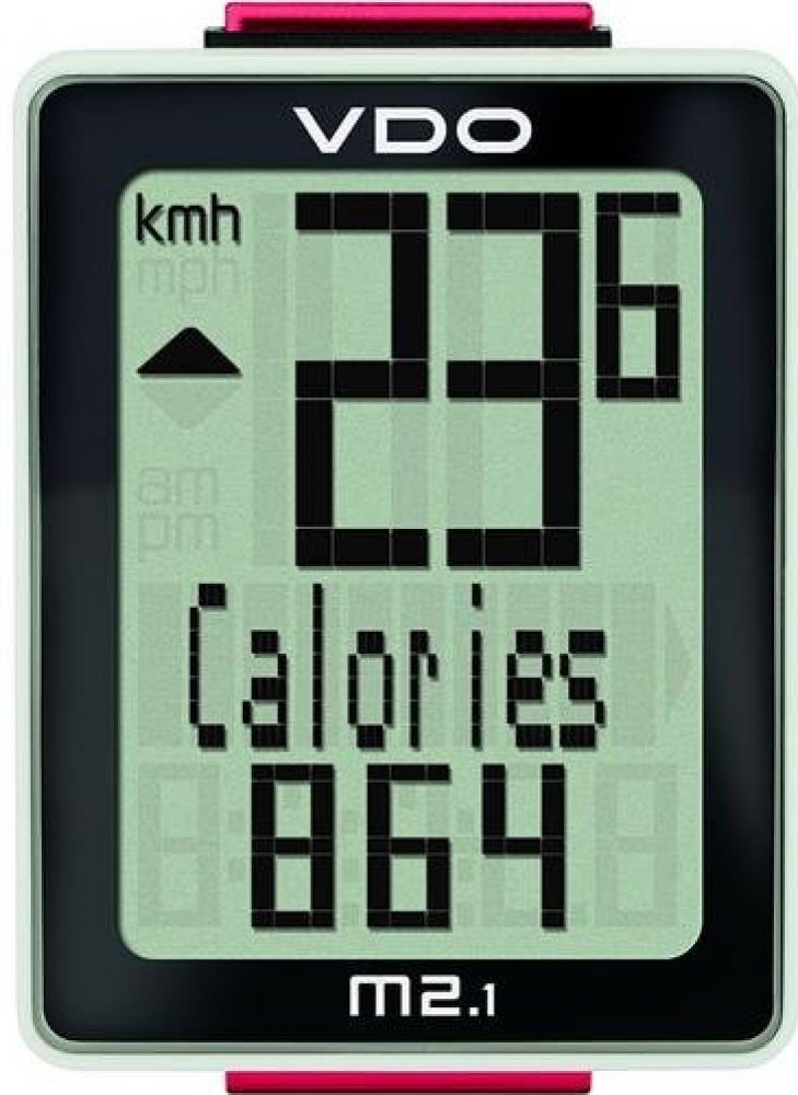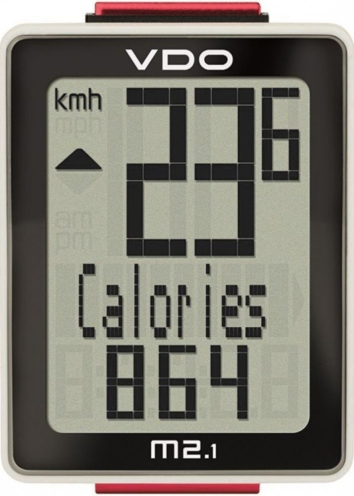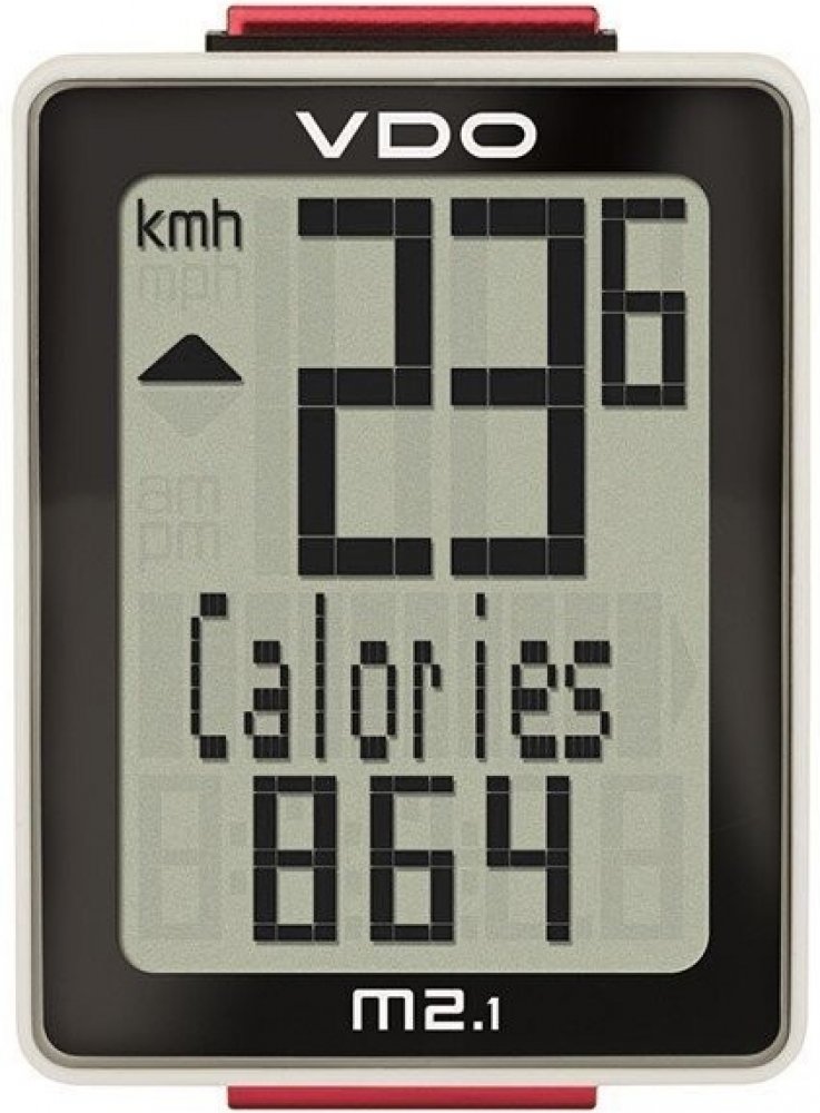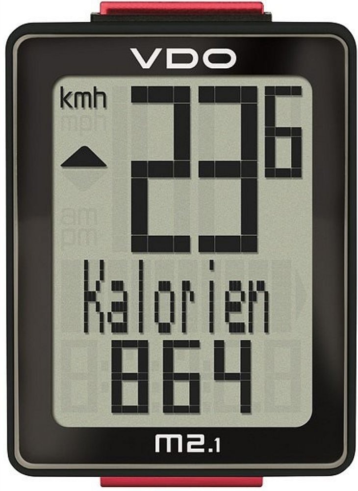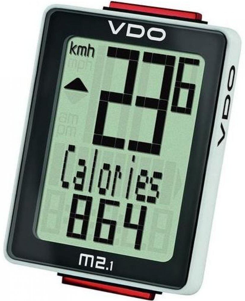 Cyklocomputer VDo M2.1 WR Tento dobře uspořádaný cyklocomputer má jen o málo víc než jen ty nejdůležitější základní funkce. Spálené kalorie se počítají pro každého, kdo umí využít extra porci motivace. Počítač M2.1 WRbike zobrazuje dvě funkce současně. Získáte tak dobrý přehled během jízdy. Specifikace: Barva: černá Materiál: plast Rozměry: 5 x 4 x 1 cm (D x Š x H) Napájení: 1x CR 2032 (součástí balení) Jazyky: (DE/EN/FR/IT/ES/NL/PL) Vlastnosti: Rychlost Doba jízdy Počítadlo kalorií Denní vzdálenost Celková vzdálenost Hodiny Maximální rychlost Celková doba jízdy Porovnání proud s průměrnou rychlostí. Obsah: 1 cyklocomputer 1 držák (kabelový) 1 baterie (CR2032) 4 stahovací pásky