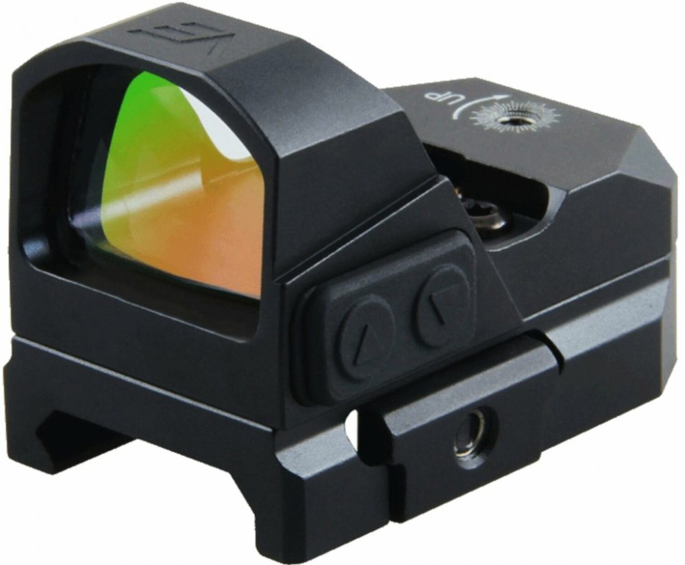 Vlastnosti: Zoom: Žádný Velikost skla: 24x17mm Celková délka: 46mm Celková šířka: 32mmm Celková výška: 35mm Výšková a stranová korekce: 45MOA Velikost záměrného bodu: 3 MOA Stupně intenzity bodu: 8 stupňů + 2 NVG stupně Typ montáže na kolimátoru: