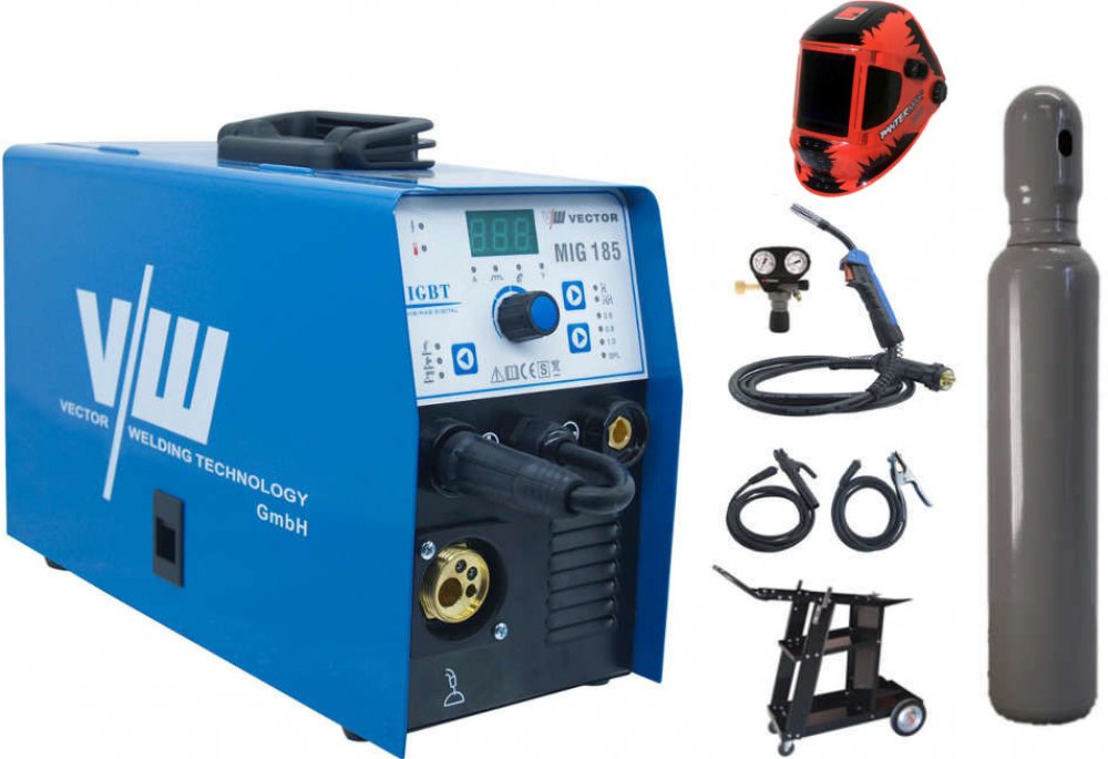 Vector Welding MIG 185 + příslušenství + kukla PanterMax 3000 + lahev + vozík