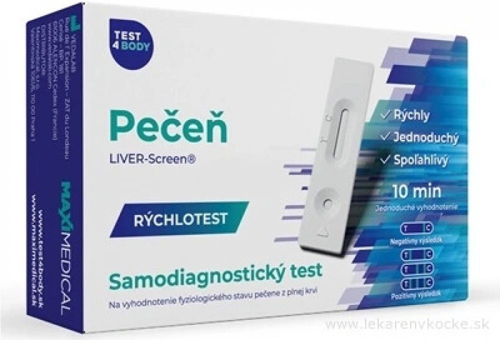 Test4Body Rychlotest Játra – domácí rychlotest pro vyhodnocení stavu jater, který detekuje zvýšené hladiny pečeňských enzymů ALT a AST v krvi a poskytuje výsledek již za 10 minut. pilulka.cz+7drmax.sk+7slickstyle.sk+7