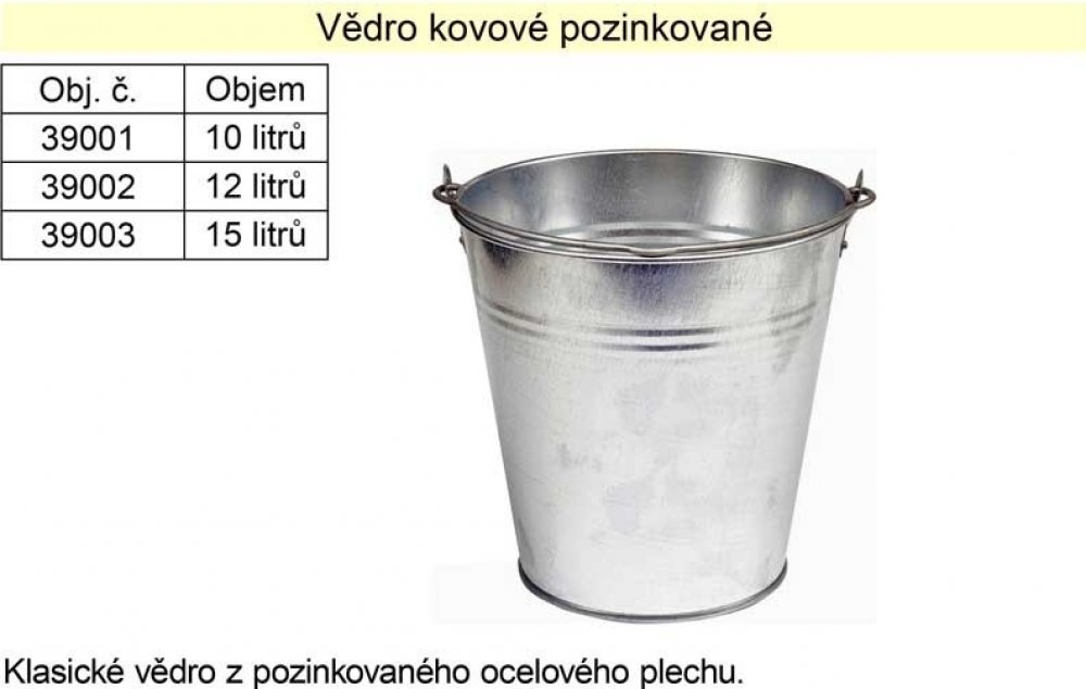 Pozinkované kovové vědro o objemu 10 l, 12 l či 15 l.