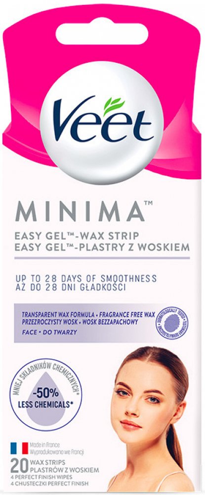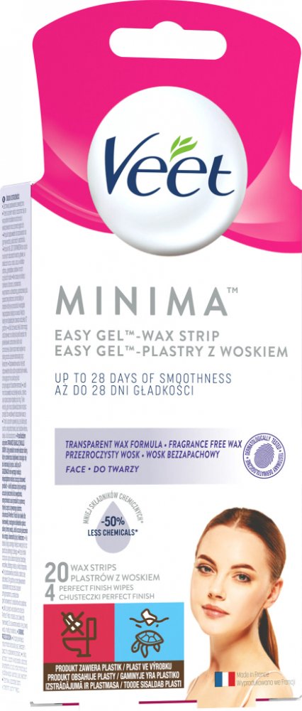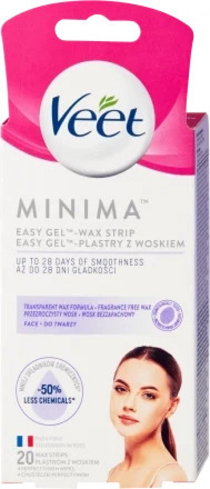 Objevte Veet Minima Easy-Gel™ voskové pásky s 50% méně chemikálií a hypoalergenním složením.