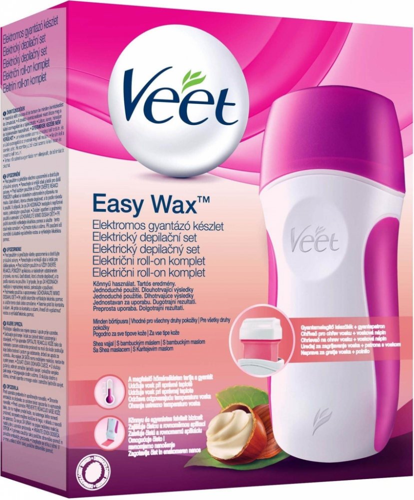 Chcete vystavit na odiv své krásné hladké nohy bez chloupků? Použijte set na depilaci teplým voskem Veet Easy Wax! Jednoduchá depilační metoda s čistou aplikací, pomocí níž dosáhnete i doma výsledků stejných jako v profesionálním studiu. Odstraňuje nežádoucí chloupky díky nové gelové struktuře využívající technologie Easy-Gelwax. Bambucké máslo, které je obsažené ve voskové směsi, dodává pokožce měkkost a hydrataci.