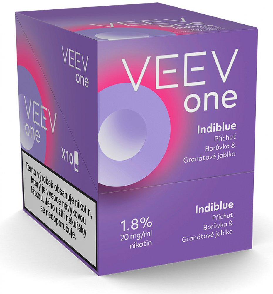 Náplně VEEV ONE INDIBLUE s osvěžující ovocnou příchutí doplněné o aroma borůvky a granátového jablka nabízejí jedinečný zážitek díky kombinaci aromatických látek používaných v potravinářství a nikotinu ve farmaceutické kvalitě. Tyto náplně zaručují kvalitní chuťový požitek s každým potáhnutím a nevyžadují žádné čištění ani doplňování e-liquidu. Náplně VEEV ONE jsou určeny výhradně pro použití se z...