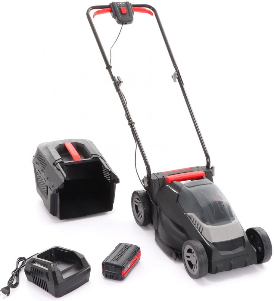 Vega 400 W 33 cm plastové 13 kg bez pojezdu akumulátorové rotační 30 l 500 m2 40 V 2.5 Ah elektromotor 60 mm 1 s plastovým košem
