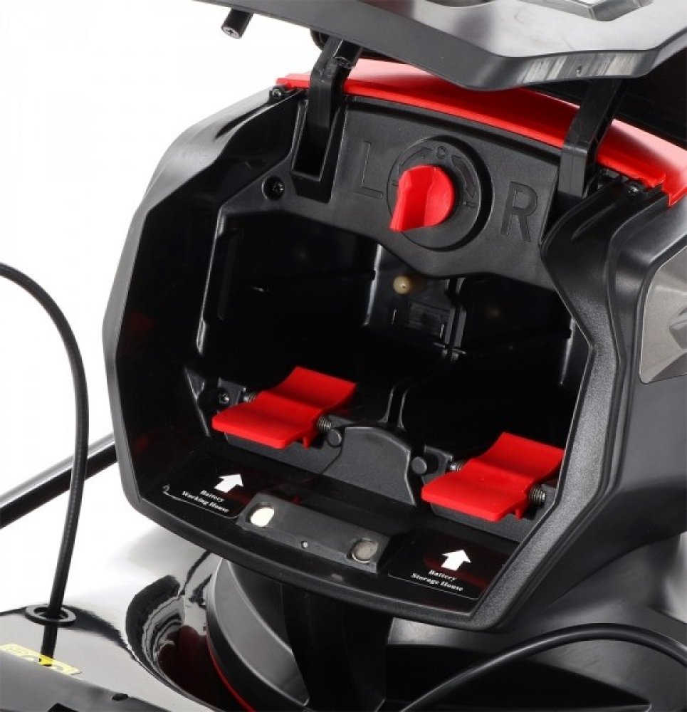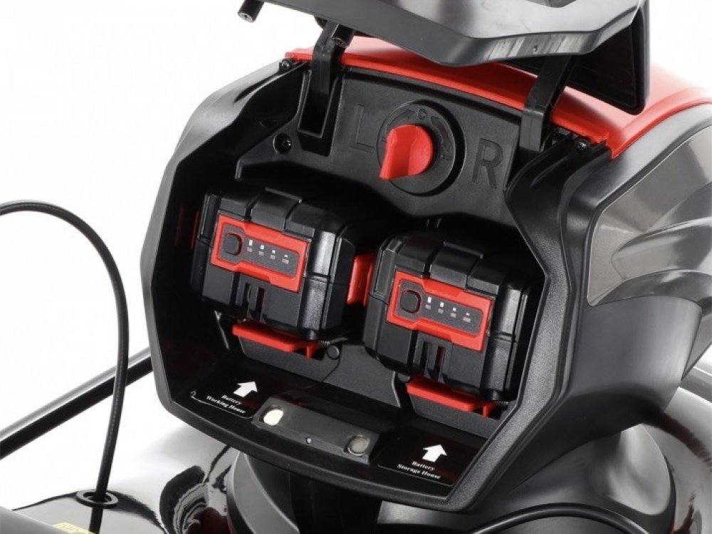Tento model sekačky disponuje dvouslotovým uložením baterií. Jeden slot aktivní a druhý úložný pro možnost okamžité výměny baterie a pokračování v sečení.