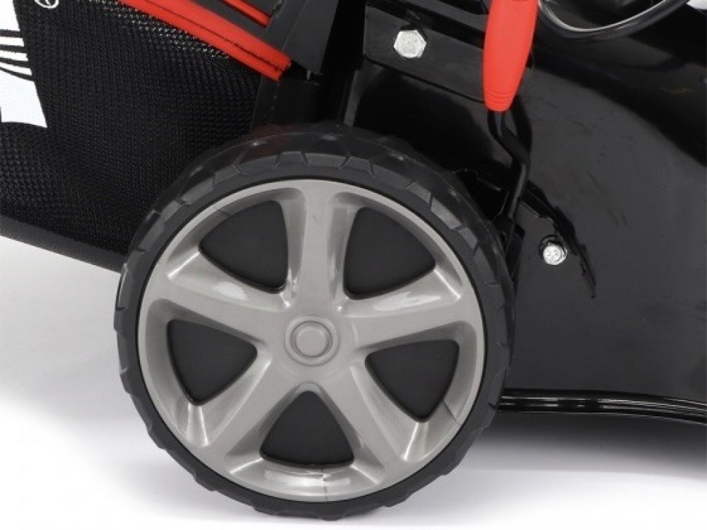 Tyto poslední funkce se používají převážně na přerostlou trávu. Velká zadní pojezdová kola i přední kola jsou uložena v oboustraných kuličkových ložiscích, centrální nastavení výšky sečení je u značky VeGA také samozřejmostí.