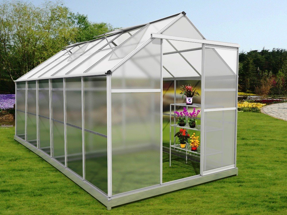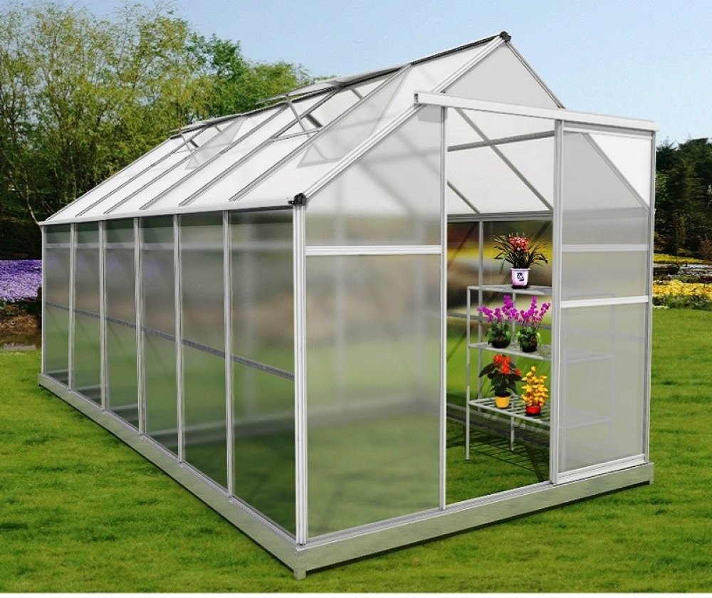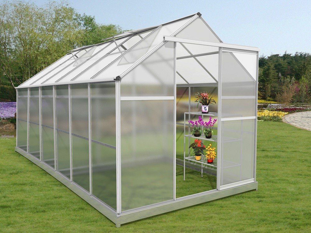Základem každého kvalitního polykarbonátového skleníku je pevná konstrukce z eloxovaných zesílených hliníkových profilů a kvalitní polykarbonát. Naše skleníky VeGA a Komfort jsou osazeny kvalitním tepelně-izolačním dvoustěnným komůrkovým polykarbonátem s UV slunečním filtrem o síle desek 4 a 6 mm. Dalším podstatným stavebním bodem každého skleníku je konstrukční spojení polykarbonátových desek s hliníkovou nosnou konstrukcí. Skleníky VeGA a Komfort mají speciální drážkovou konstrukci, jedná se o moderní dokonalé řešení, které zásadně zvýšilo celkovou pevnost a stabilitu celého skleníku. Oproti zastaralému drátkovému systému, který se už téměř moc nepoužívá, se zároveň zvýšila i odolnost skleníku vůči nárazům větru a sněhové zátěži. Ke skleníkům je zdarma dodávána masivní pozinkovaná základna sloužící pro bezproblémové používání skleníku i bez pevného základu. Velice nadstandardní výška skleníků se základnou 191-250 cm dle modelů je koncipována pro běžné evropské uživatele, kteří mají rádi dostatečný prostor a užitkový komfort. Dále jsme s výrobcem vyjednali úpravy pro navýšení počtu oken na sklenících a zároveň přiobjednali více oken k jednotlivým modelům, kdy jak sami dobře víte, že správné a dostatečné odvětrání je tím podstatným bodem pěstitelského úspěchu. Dalším kritériem našich zákazníků byla větší šířka skleníků, proto jsme se rozhodli vyjít těmto potřebám vstříc a nabízíme modely rozšířené a to od 184 do 281 cm šíře.