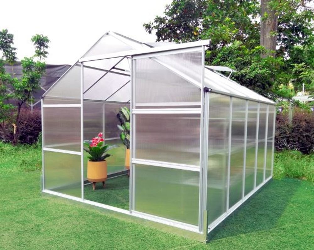 Základem každého kvalitního polykarbonátového skleníku je pevná konstrukce z eloxovaných zesílených hliníkových profilů a kvalitní polykarbonát. Naše skleníky VeGA a Komfort jsou osazeny kvalitním tepelně-izolačním dvoustěnným komůrkovým polykarbonátem s UV slunečním filtrem o síle desek 4 a 6 mm. Dalším podstatným stavebním bodem každého skleníku je konstrukční spojení polykarbonátových desek s hliníkovou nosnou konstrukcí. Skleníky VeGA a Komfort mají speciální drážkovou konstrukci, jedná se o moderní dokonalé řešení, které zásadně zvýšilo celkovou pevnost a stabilitu celého skleníku. Oproti zastaralému drátkovému systému, který se už téměř moc nepoužívá, se zároveň zvýšila i odolnost skleníku vůči nárazům větru a sněhové zátěži. Ke skleníkům je zdarma dodávána masivní pozinkovaná základna sloužící pro bezproblémové používání skleníku i bez pevného základu. Velice nadstandardní výška skleníků se základnou 191-250 cm dle modelů je koncipována pro běžné evropské uživatele, kteří mají rádi dostatečný prostor a užitkový komfort. Dále jsme s výrobcem vyjednali úpravy pro navýšení počtu oken na sklenících a zároveň přiobjednali více oken k jednotlivým modelům, kdy jak sami dobře víte, že správné a dostatečné odvětrání je tím podstatným bodem pěstitelského úspěchu. Dalším kritériem našich zákazníků byla větší šířka skleníků, proto jsme se rozhodli vyjít těmto potřebám vstříc a nabízíme modely rozšířené a to od 184 do 281 cm šíře.