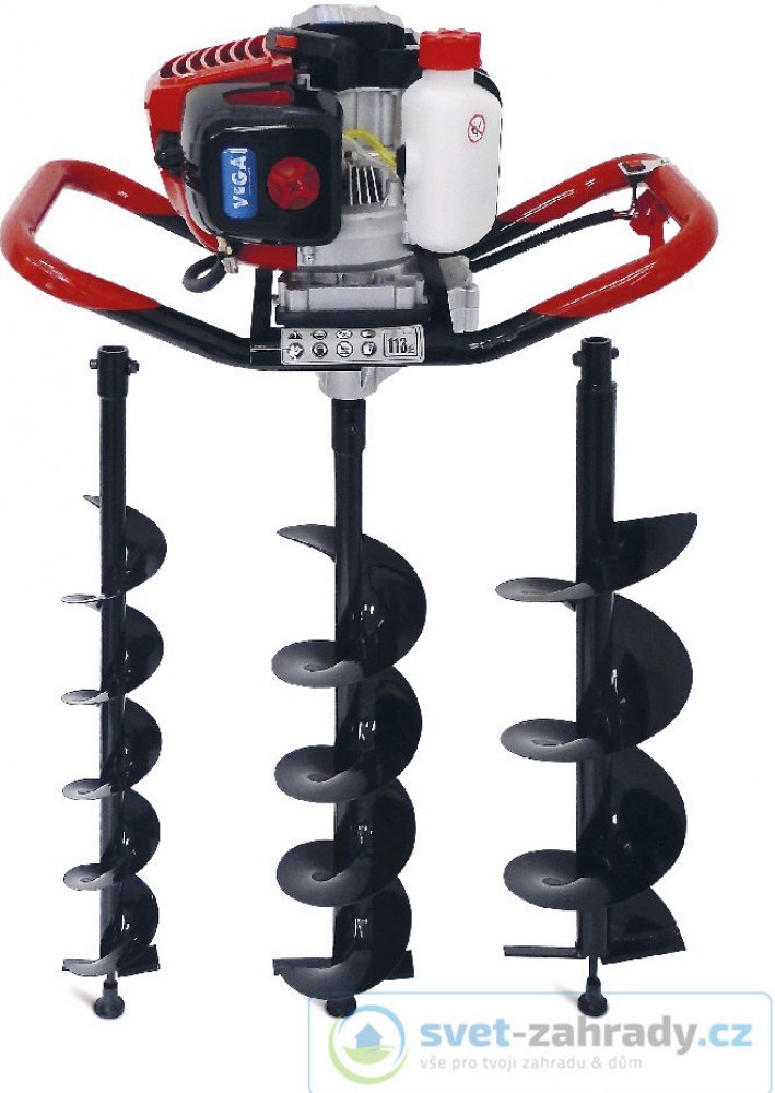 Benzínový vrták VeGa AG55 PRO má vzduchem chlazený jednoválcový dvoutaktní motor s kluznou odstředivou spojkou. Ideální k vrtání jednoduchých půdních otvorů od 10, 15 nebo 20 cm. Průměr odpovídá použitému vrtáku. Praktická rukojeť zemního vrtáku. Vhodný ke snadnému hloubení zemních děr pro stavbu plotů, děr pro sázení stromků. Vypínač a regulace otáček na pravé rukojeti.