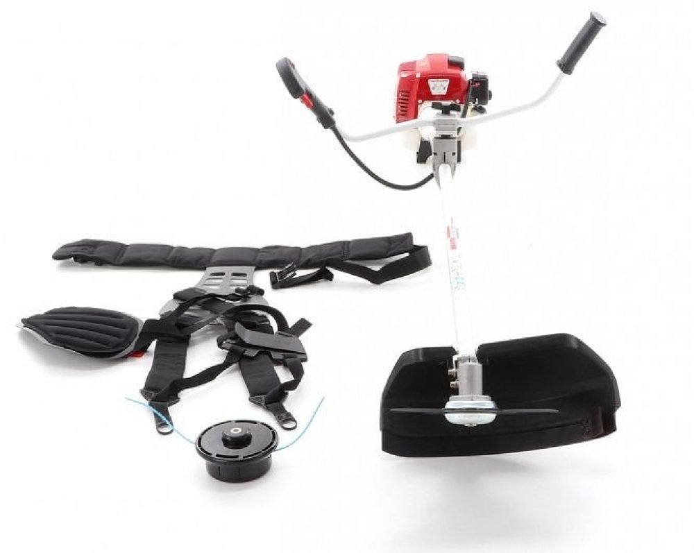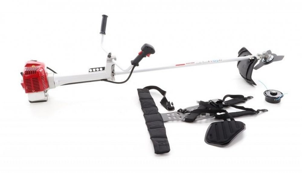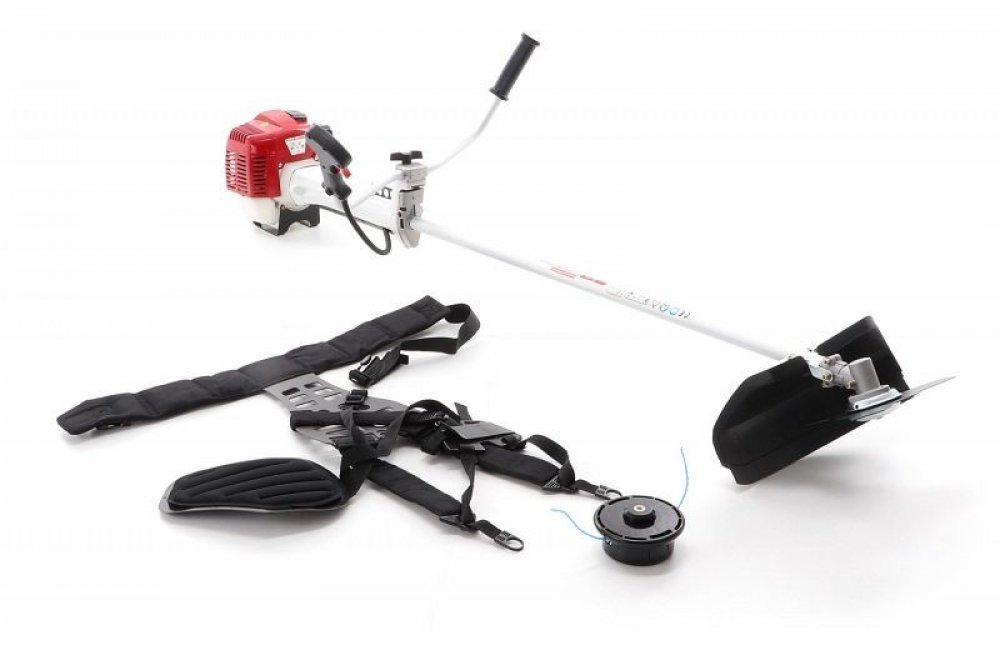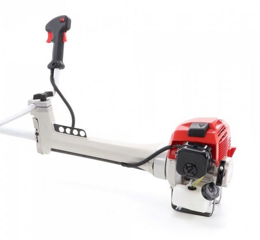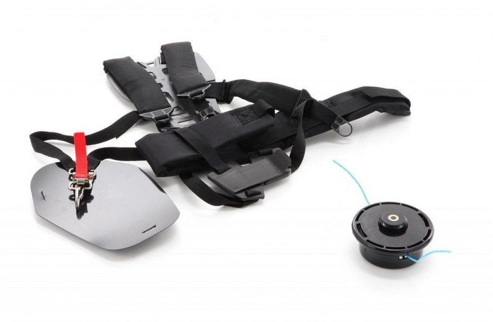 Stroj je poháněn pevnou hřídelí uloženou v ložiskách. Komfortní ovládání zajišťuje nastavitelná "bike" rukojeť (bez nářadí) a pohodlný, polstrovaný dvouramenný zádový popruh. Křovinořez je dodáván s 3-zubým žacím nožem (záběr 255 mm) pro sekání odolnějšího porostu a poloautomatickou strunovou hlavou (záběr 430 mm) s kovovým trnem pro snadné vysouvání struny.