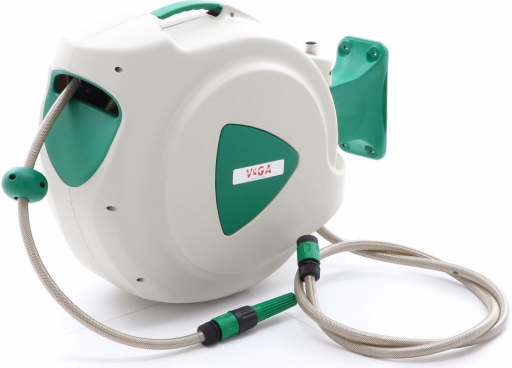 1. automatické řádkové navíjení hadice na přístroj 2. zastavení v jakékoliv pozici a pomalé automatické navíjení zpět 3. montáž na stěnu s pomocí montážní konzole ( nebo alternativně je možné připevnit pomocí zamního vrutu na zem) 4. až o 180 st. je otočný při montáži na stěnu 5. až o 360 st. je otočný při montáži na zemi 6. dodání ve smontovaném stavu 7. lehká a snadná ovladatelnost 8. odolná a zároveň velice pohodlná rukojeť Postřikovací pistole není součástí balení