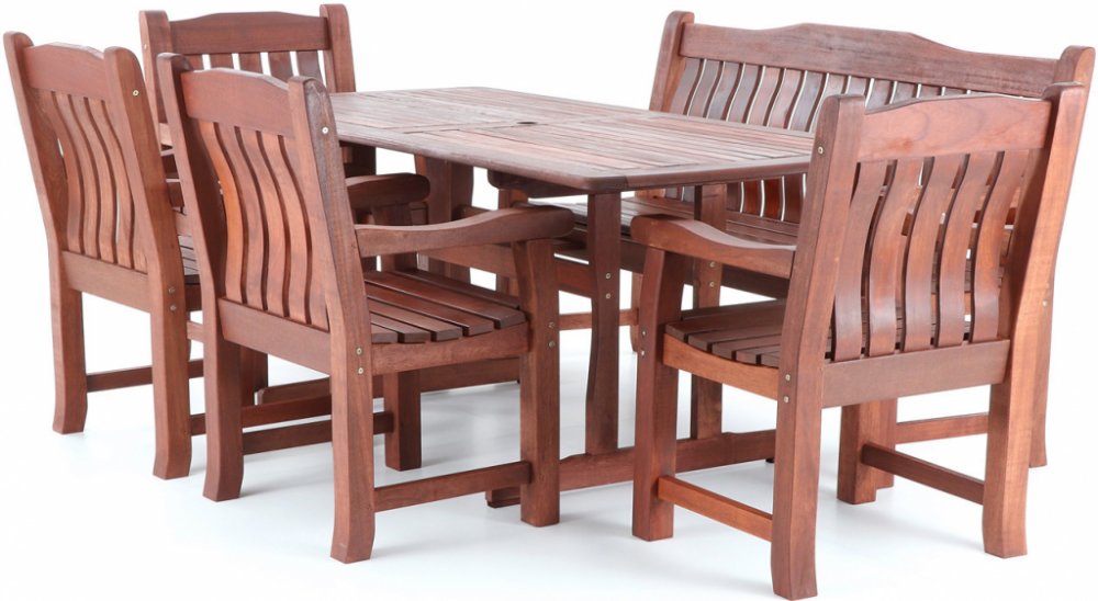 - Luxusní masivní stolová sestava čtyř křesel, jedné lavice a stolu z exotického, velice trvanlivého a tvrdého dřeva MERANTI. Dřevo o neuvěřitelné síle a velmi robustní konstrukce řadí tuto sestavu mezi nejmasivnějších výrobky ve své kategorii na trhu.