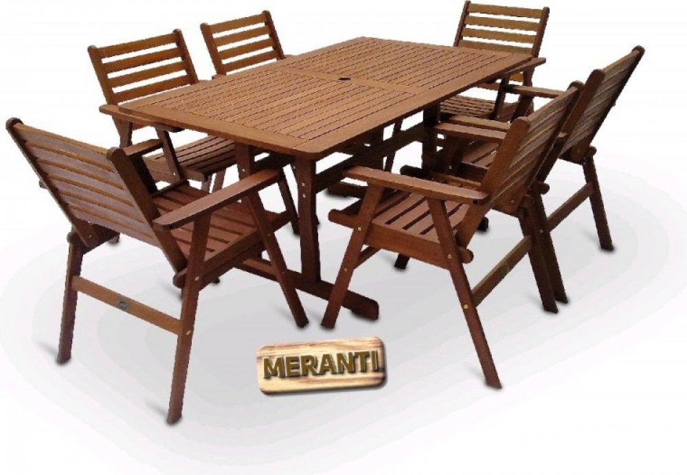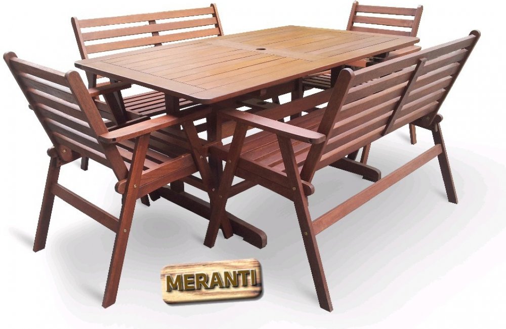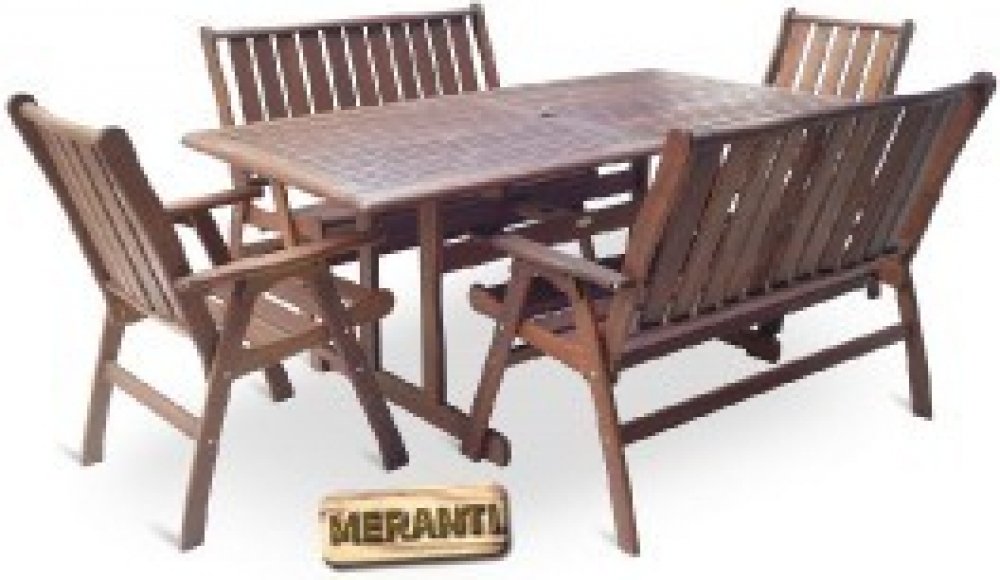 Pokud chcete mít skutečně luxusní zahradní nábytek a ohromit Vaše známé, přátele nebo i rodinu, zvolte dřevinu Meranti. Tato dřevina Vás na první pohled upoutá svou atraktivní červenohnědou barvou a unikátní kresbou dřeva. Vyznačuje se velkou tvrdostí a dlouhou životností. Nábytek z Meranti se nemusíte bát nechat ve venkovním prostředí, protože je odolný proti povětrnostním podmínkám. A pokud o něj budete i náležitě pečovat, vydrží Vám spoustu let.